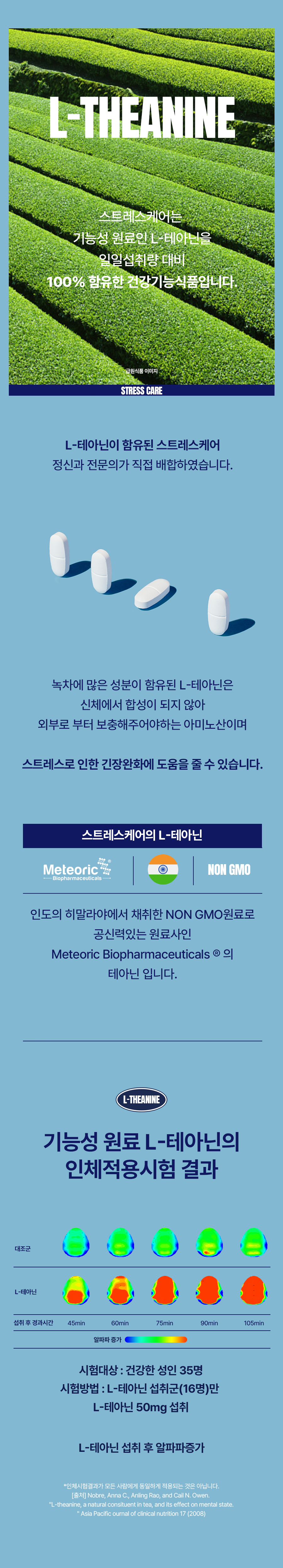 -정신과전문의인 대표가 만든 브랜드로, 주성분인 테아닌 250mg 외 트립토판 220mg 함유(캐나다 식약처 권장량)로 마음건강 관리에 탁월