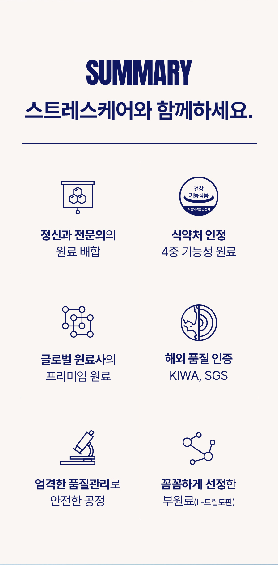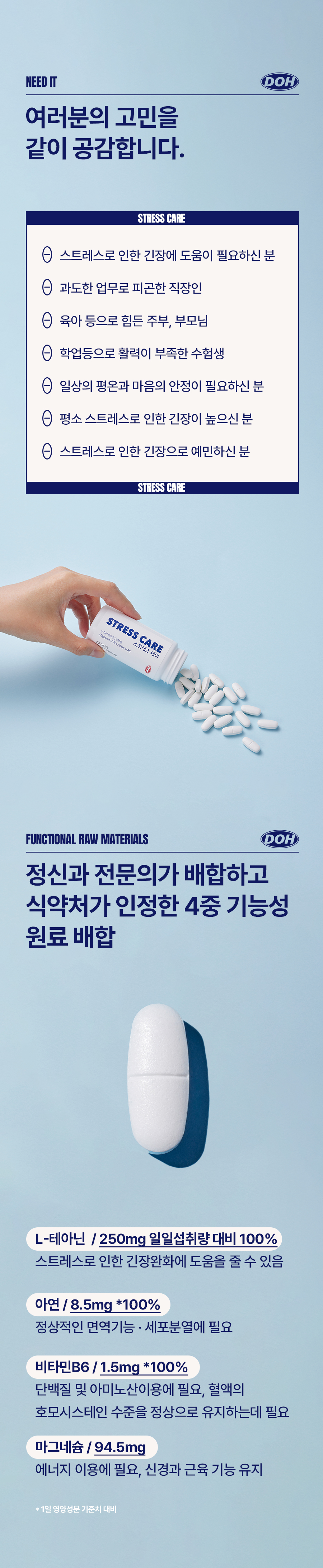 -정신과전문의인 대표가 만든 브랜드로, 주성분인 테아닌 250mg 외 트립토판 220mg 함유(캐나다 식약처 권장량)로 마음건강 관리에 탁월