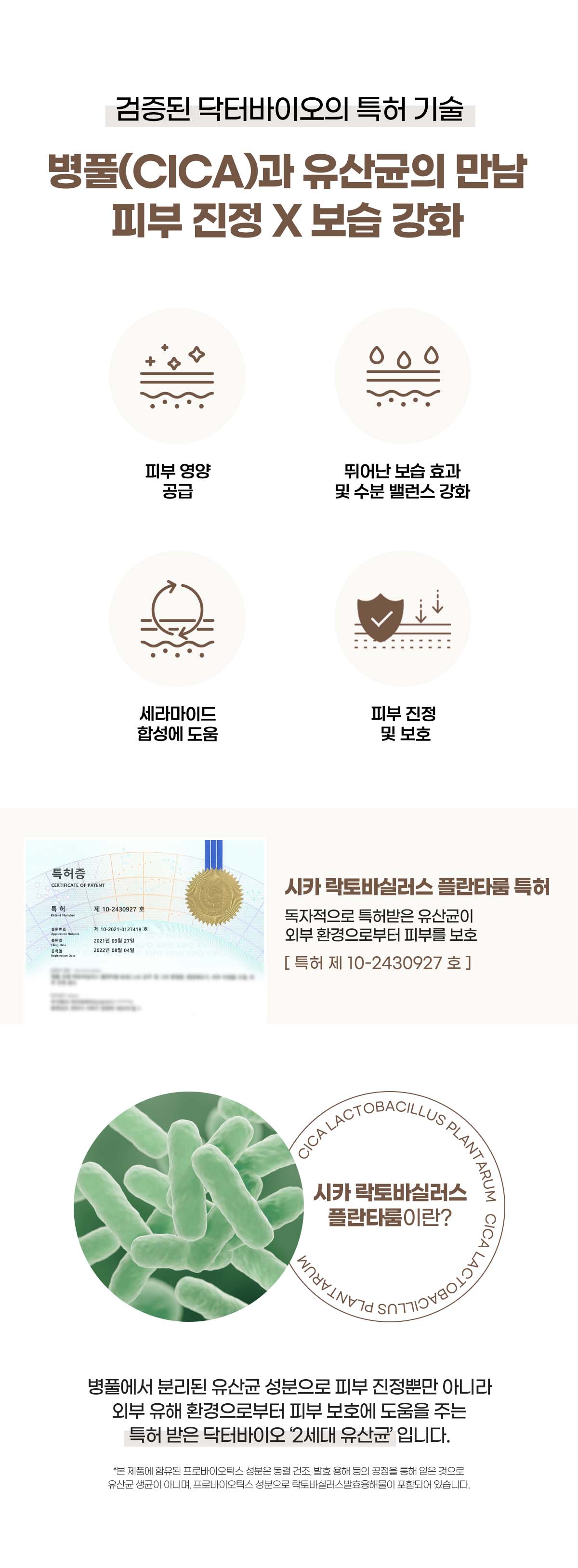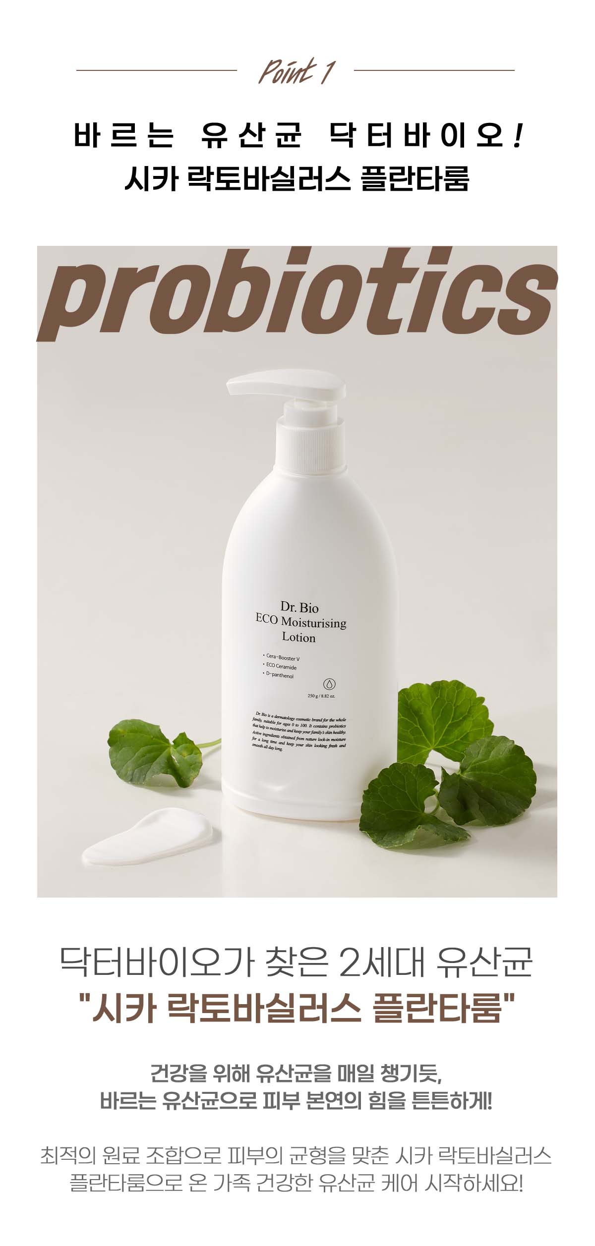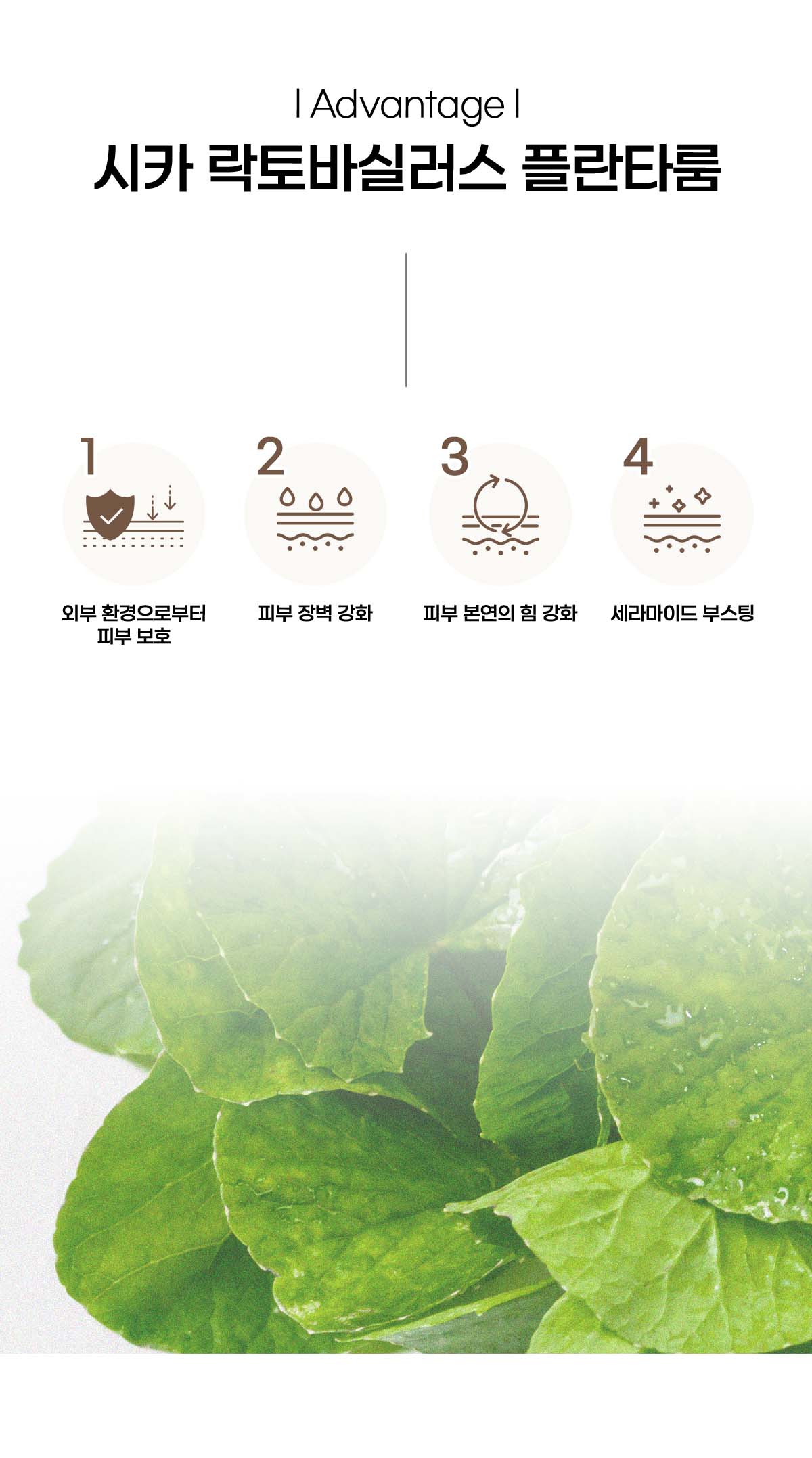 - 민감한 피부를 위한 고보습 로션- 병풀과 유산균의 만남!- 시카 락토바실러스 플란타룸 특허 유산균 함유- 병풀에서 분리된 유산균 성분으로 피부 진정 및 피부 보호에 도움을 줌- 영유아 안전성 테스트 완료