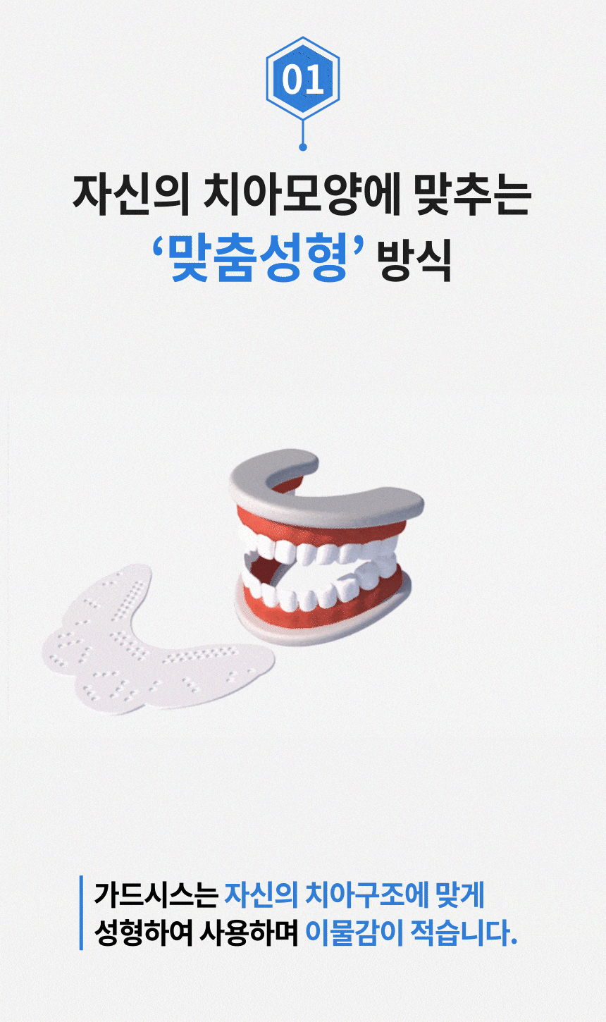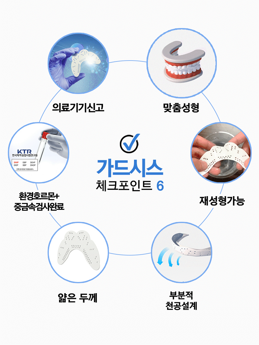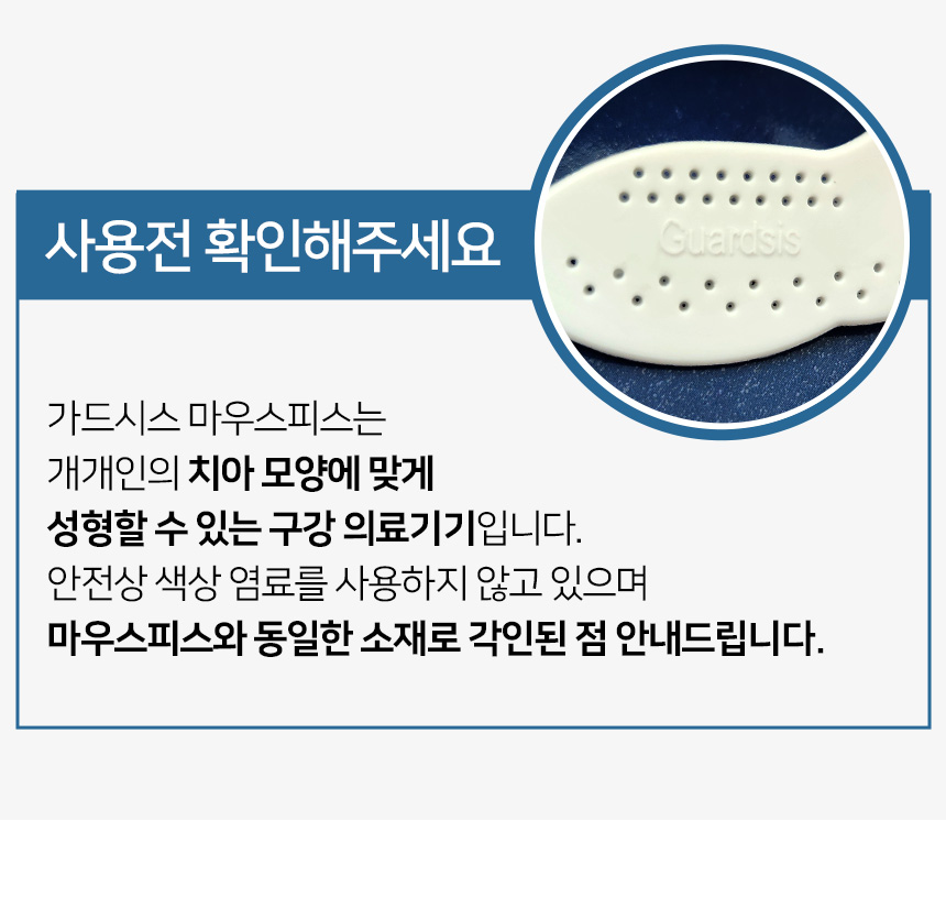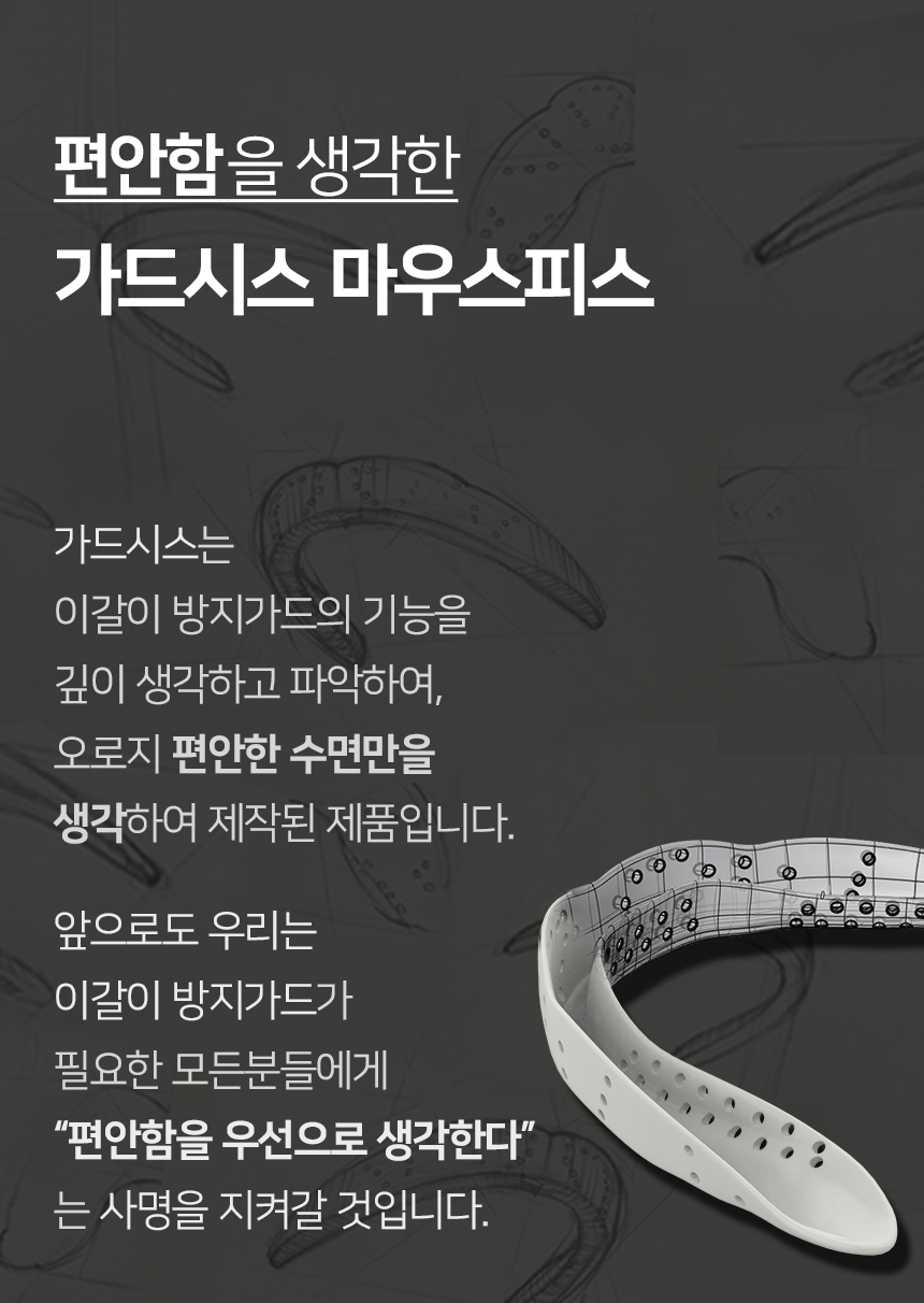 -롯데백화점 입점-치주질환,턱관절 질환, 두통을을 유발하는 이갈이 방지!-편안한 수면만을 생각하여 제작된 제품-치아모양에 맞추는 맞춤성형 방식-한국의료기기 안전정보원에 의료기기로 신고된 제품-네이버 리뷰 18,000개, 만족도 4.52점