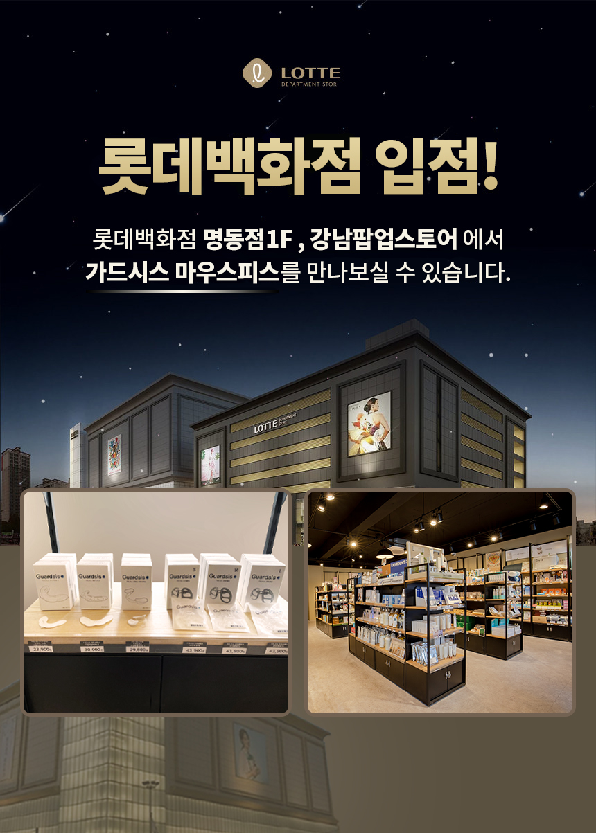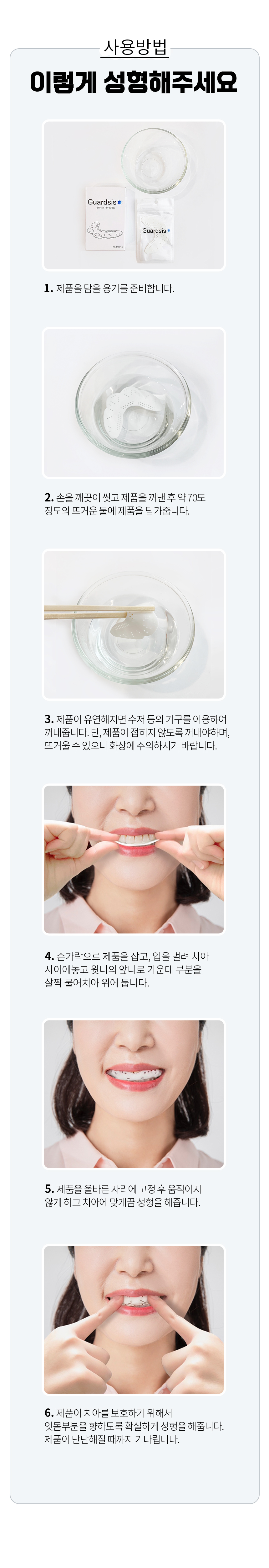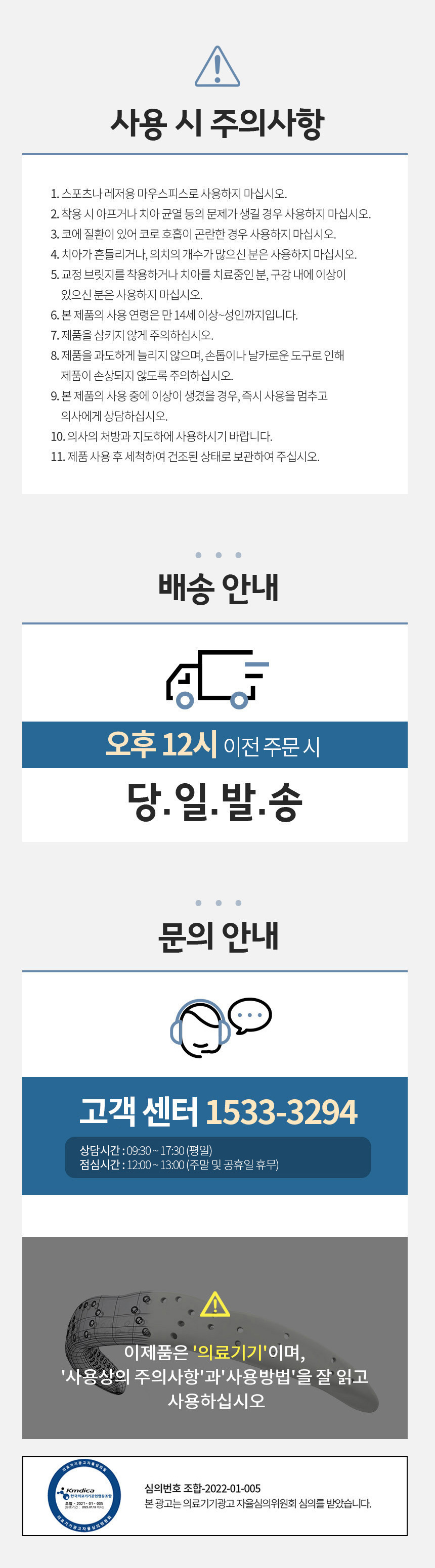 -롯데백화점 입점-치주질환,턱관절 질환, 두통을을 유발하는 이갈이 방지!-편안한 수면만을 생각하여 제작된 제품-치아모양에 맞추는 맞춤성형 방식-한국의료기기 안전정보원에 의료기기로 신고된 제품-네이버 리뷰 18,000개, 만족도 4.52점