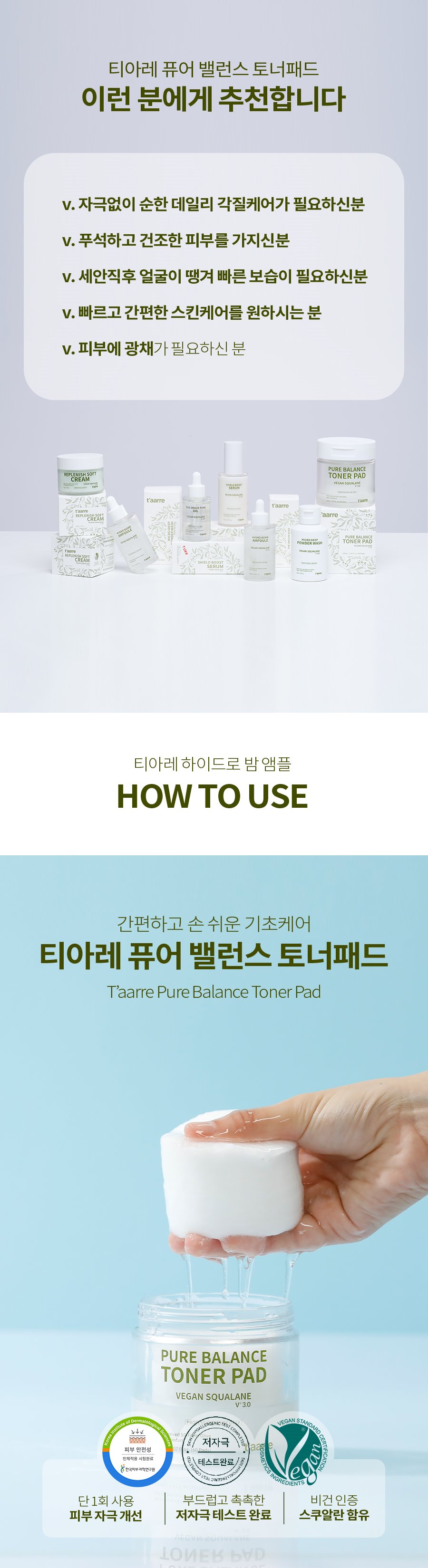 -티아레 퓨어 밸런스 토너 패드는 순면 100%의 패드로 부드럽고 간편하게 피부결 정리를 도와주고, 피부 표면에 윤활제로 작용하여 매끄러운 피부로 가꾸어 줍니다.