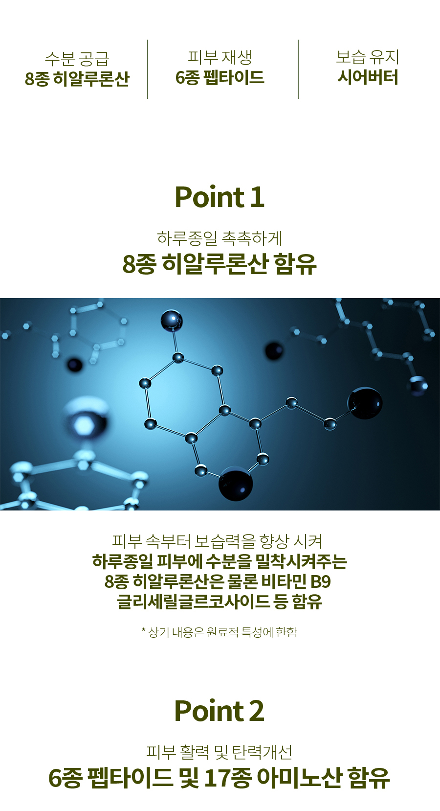 -세안 직후 바로 건조해지는 피부에 신속 수분 공급! → 올리브스쿠알란과 8중 히알루론산 함유