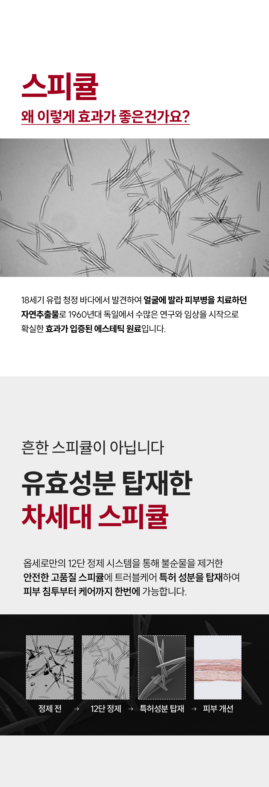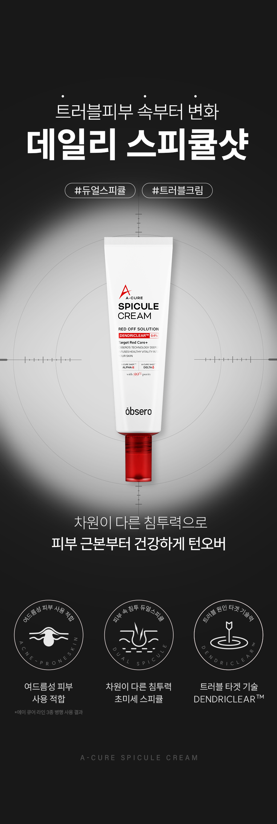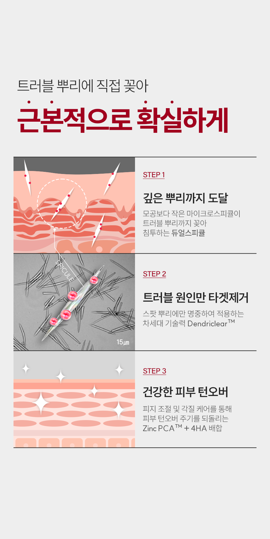 -모공보다 작은 마이크로스피큘이 트러블 뿌리까지 곶아 침투하는 듀얼스피큘