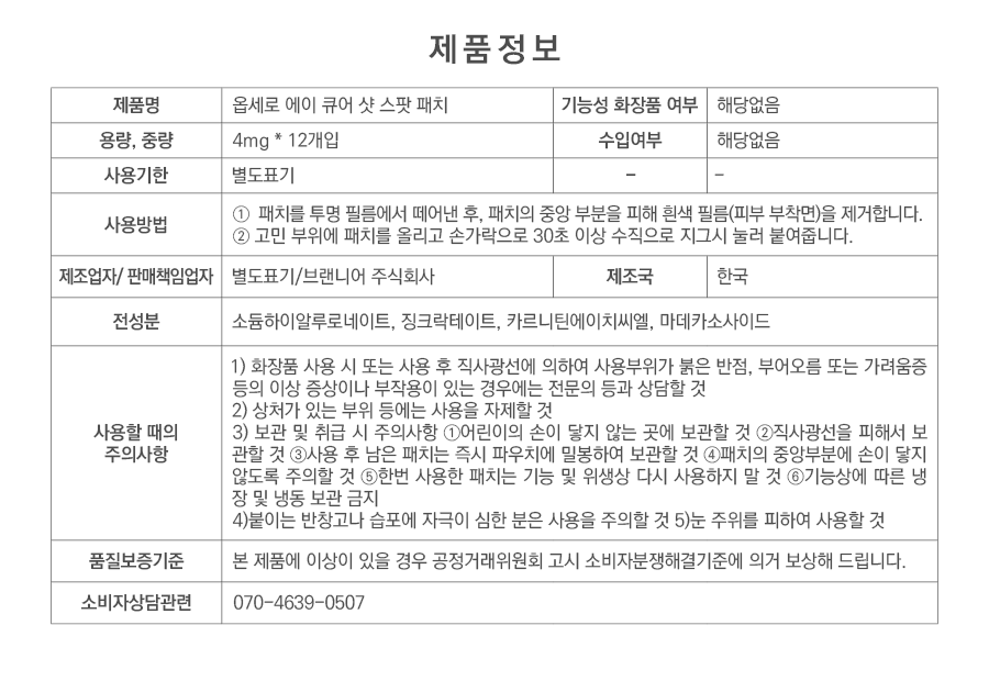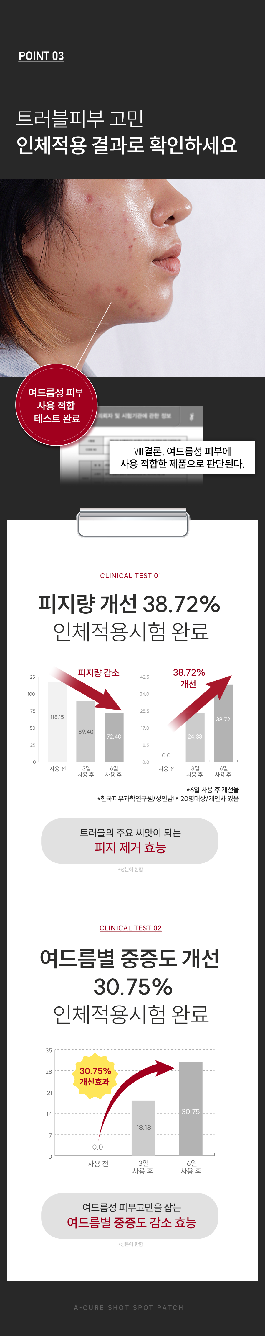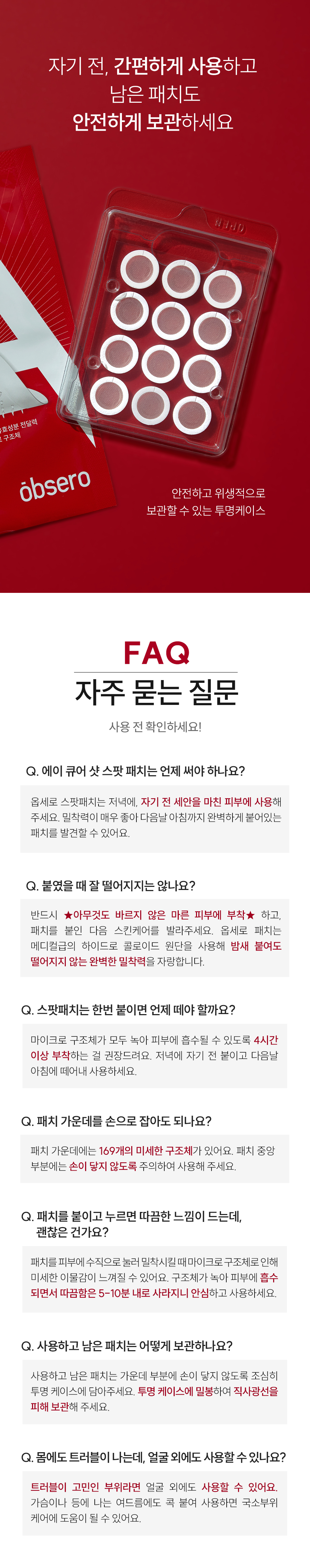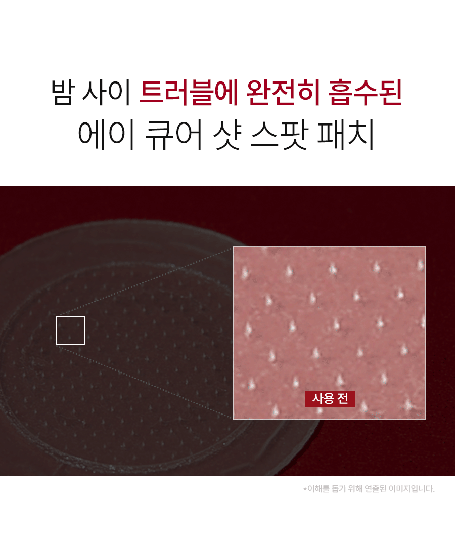 -트러블패치 네이버랭킹 1위-피부 속 빠른 전달력으로 숨어있는 트러블 뿌리까지 확실하게 응급 진정-전성분 단 4개로 순하지만 확실한 효과!-녹아 흡수되는 169개의 미세한 용해성 구조체가 고민부위 뿌리까지 유효성분을 전달