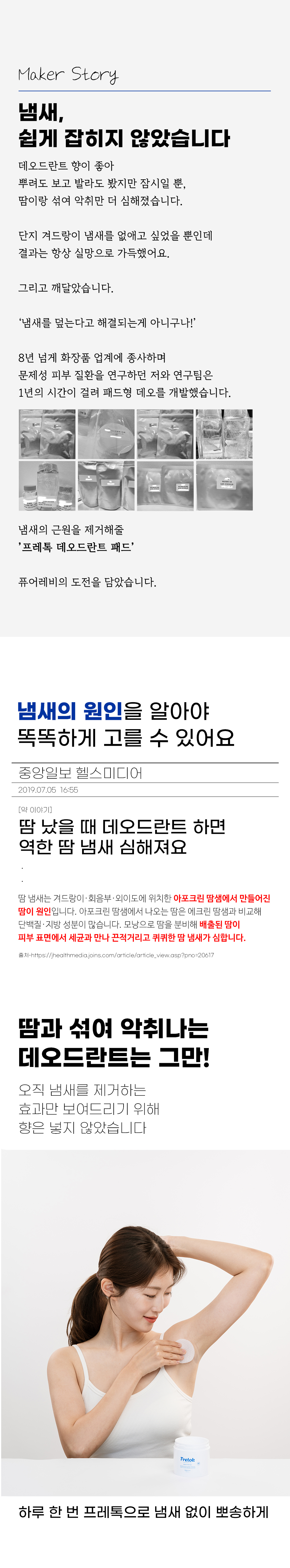 -기존 향이 나는 데오드란트는 향이 있어서 인위적이며, 땀냄새와 섞이면 역한 냄새가 나지만, 해당 제품은 무향 제품으로 냄새 걱정 없이 쾌적하게 사용할 수 있음
