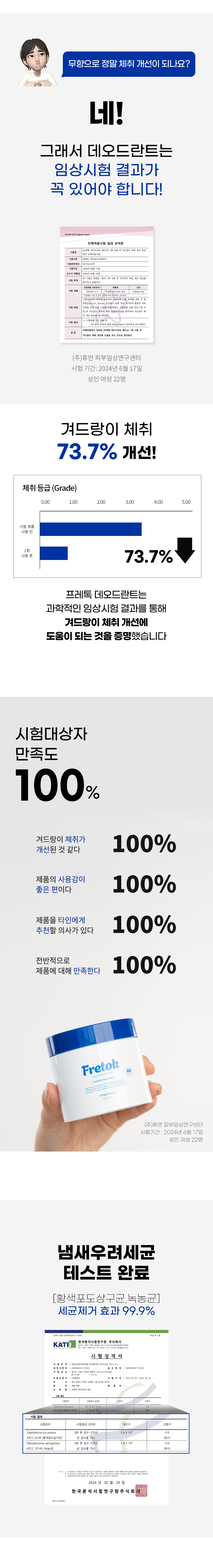 -1회 사용 임상 시험 결과 겨드랑이 체취 73,7% 개선됨