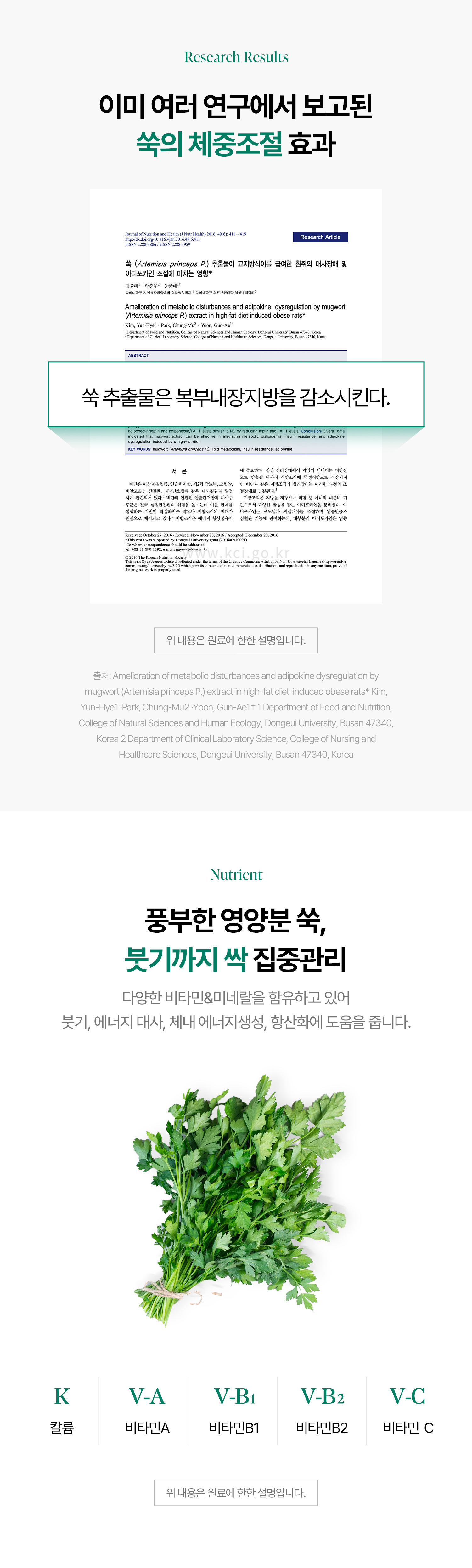 1. 국내산 쑥 함유로 몸을 따뜻하게 하고 복부내장지방을 감소