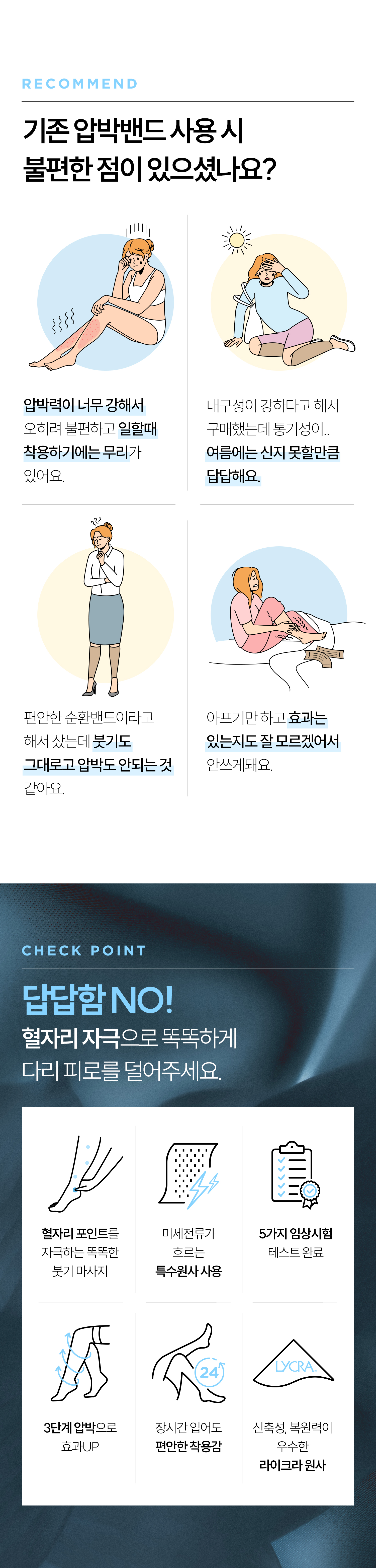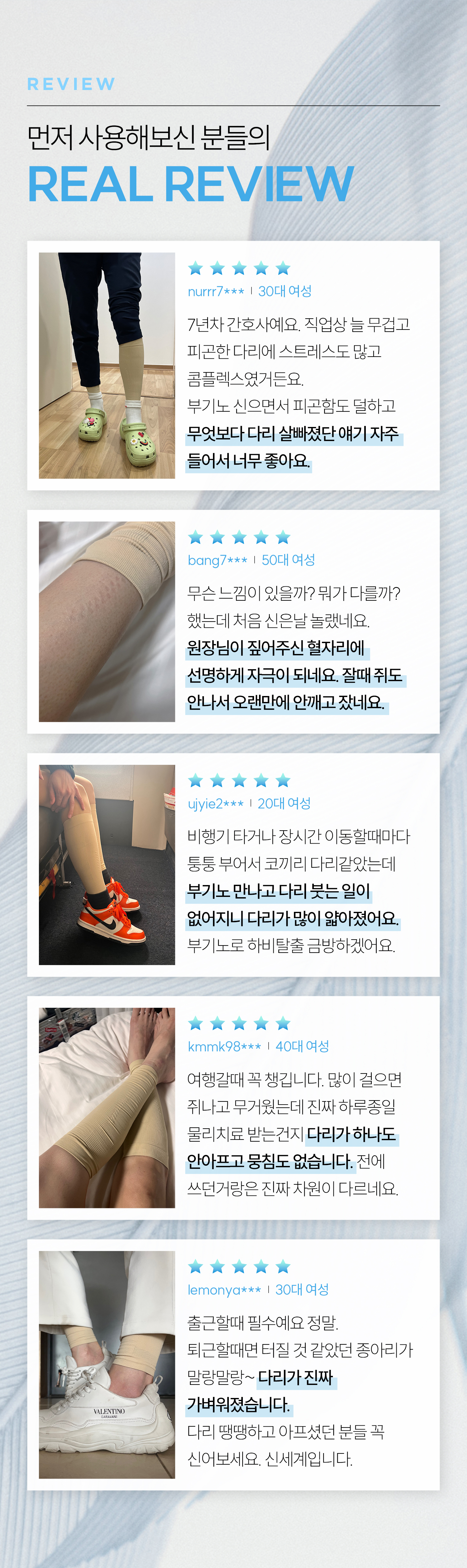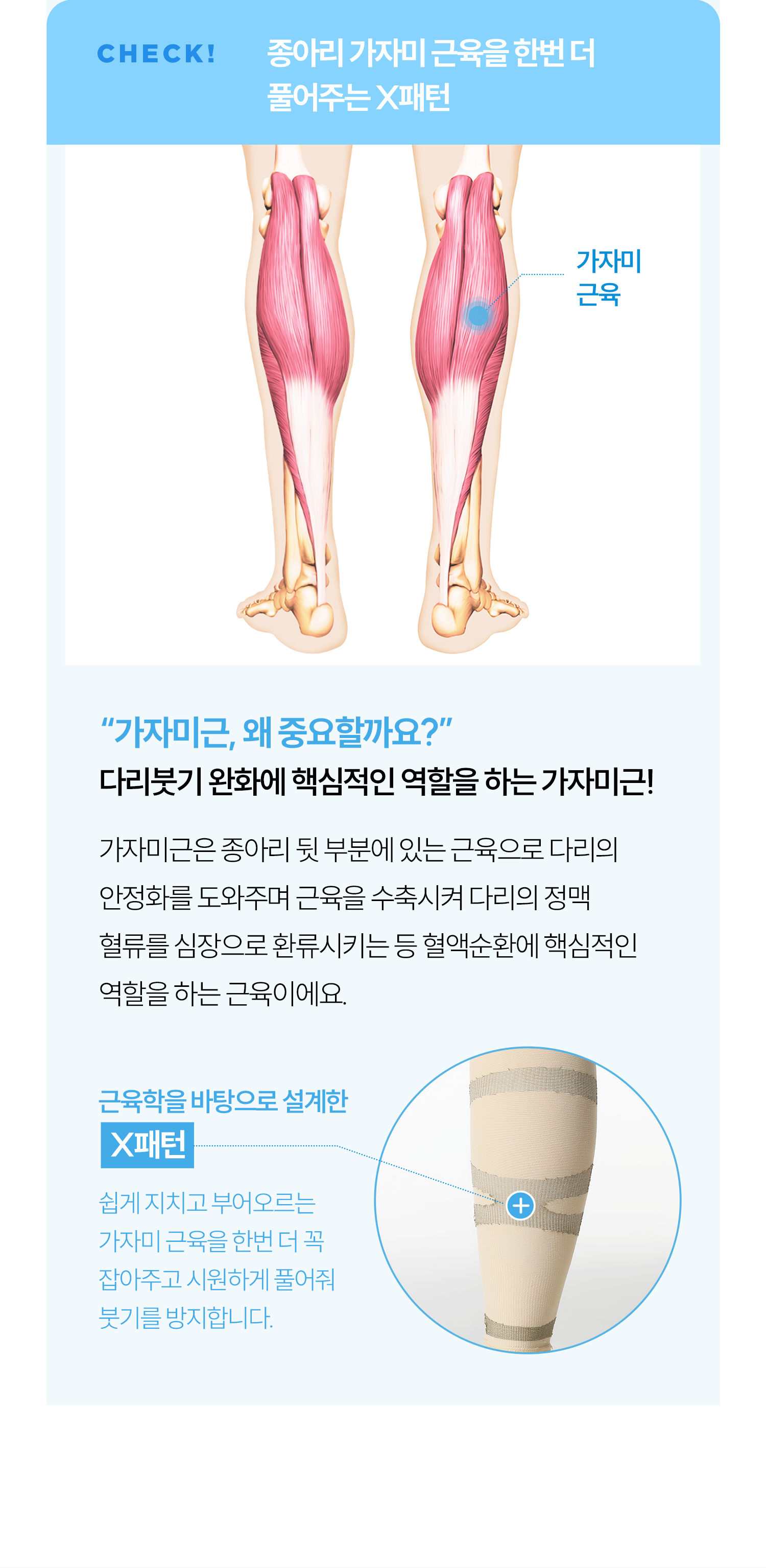 1. 한의사가 짚어주는 포인트를 자극하는 혈자리지압 기능2. 미세전류가 흐르는 특수원사로 혈액순환3. 종아리 부위별로 3단계 압박으로 효과 증대4. 신축성과 복원력이 우수한 라이크라원사