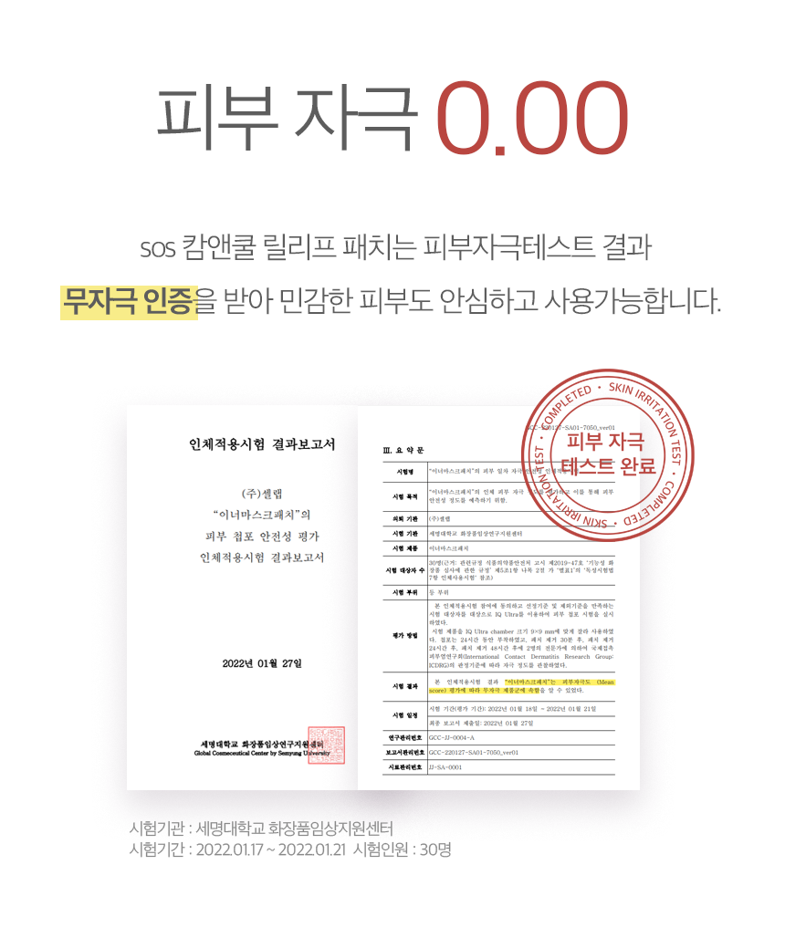 -특허받은 제형으로 피부에 쫀쫀하게 밀착하고 부드럽게 떨어지는 특허 하이드로겔 패치