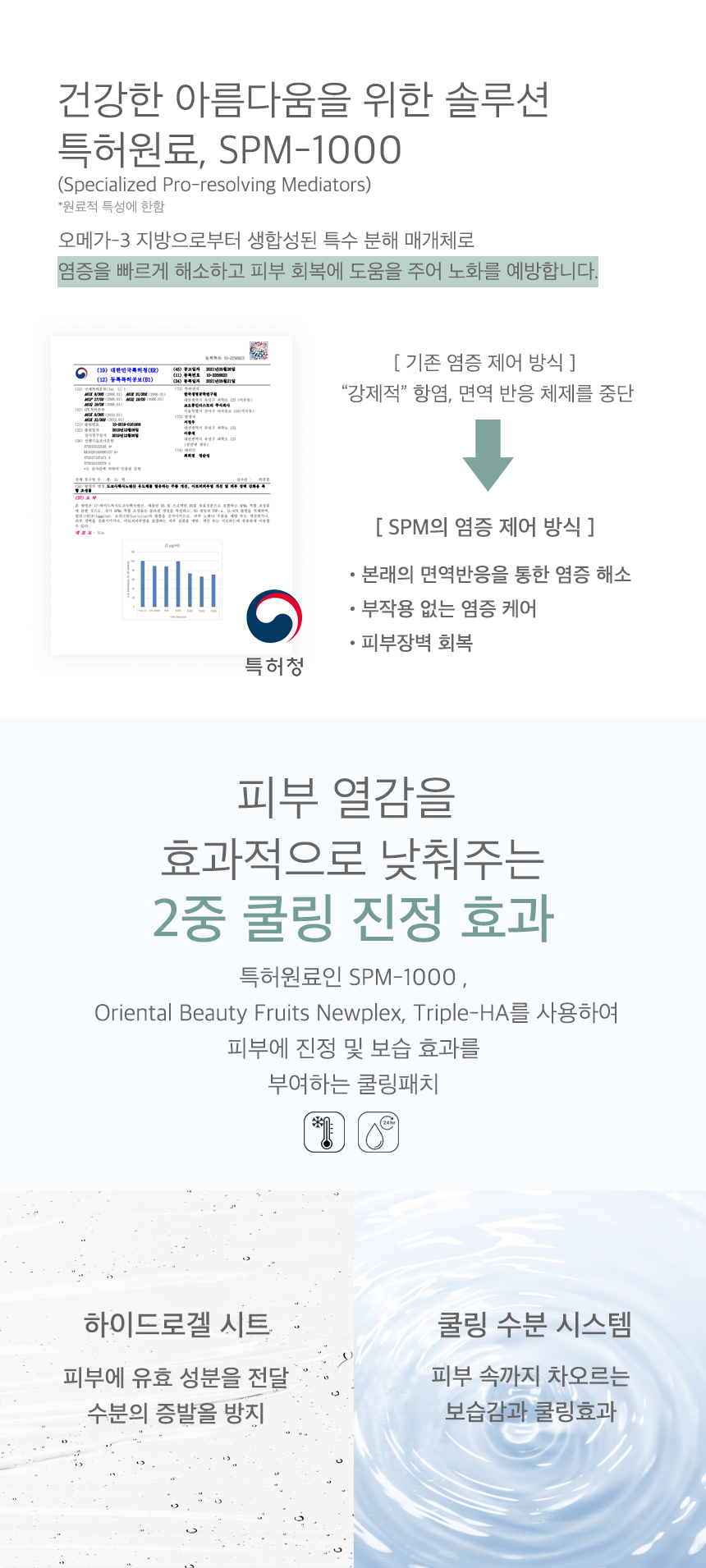 -오메가-3 지방으로부터 추출한 특허원료 SPM-1000로 염증을 빠르게 해소하고 피부 회복에 도움을 주어 노화를 예방