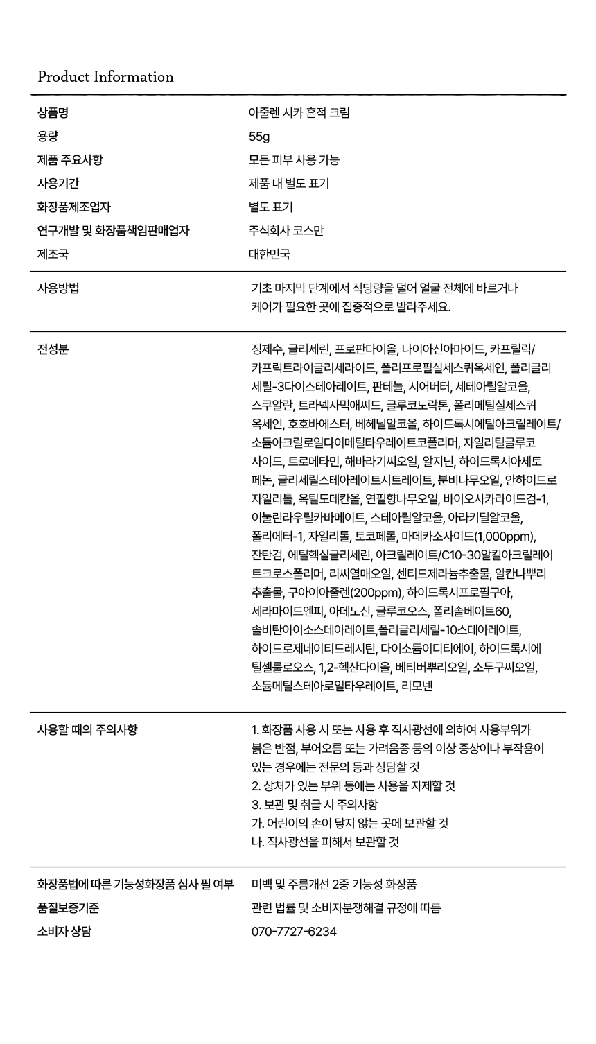 - 흔적 케어 전문 아이템: 아줄렌과 병풀 성분이 피부 흔적을 집중 관리하며, 공인인증기관 (P&K) 피부임상 (진정, 붉은기, 트러블 흔적 등) 4종 완료