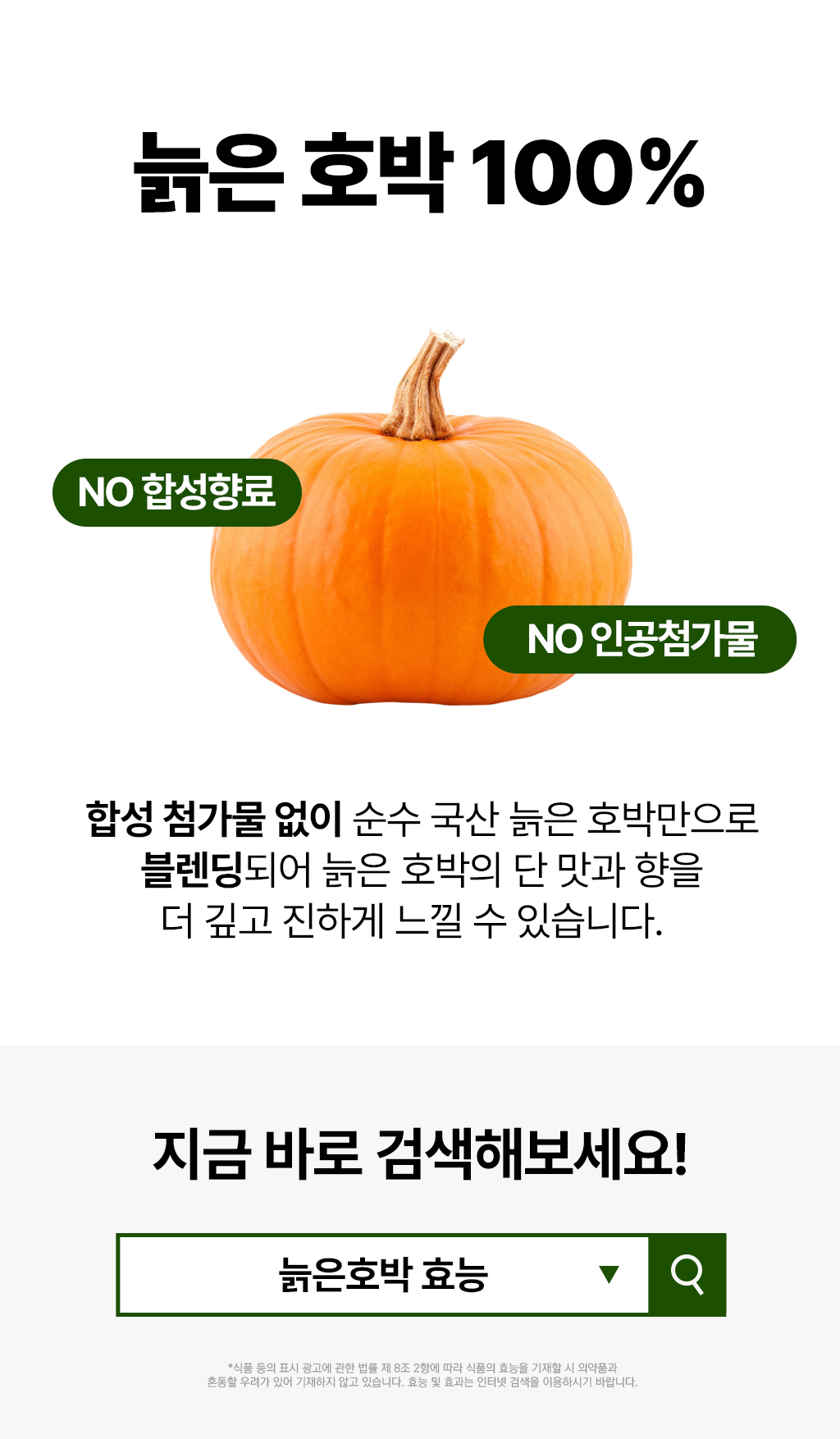 - 올리브영 입점 상품- 국산 늙은 호박 100%- 진하게 우러나는 원료 고유의 맛과 향- 카페인 ZERO / 합성향료 ZERO / 인공첨가물 ZERO- 생분해 필터로 뜨거운 물에 우려도 안전