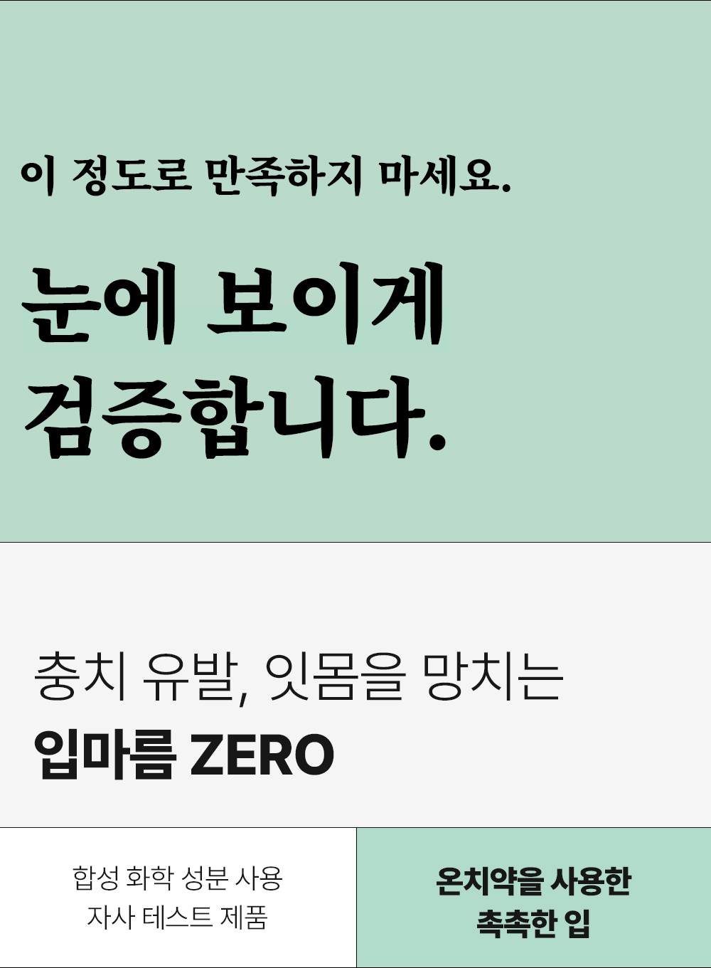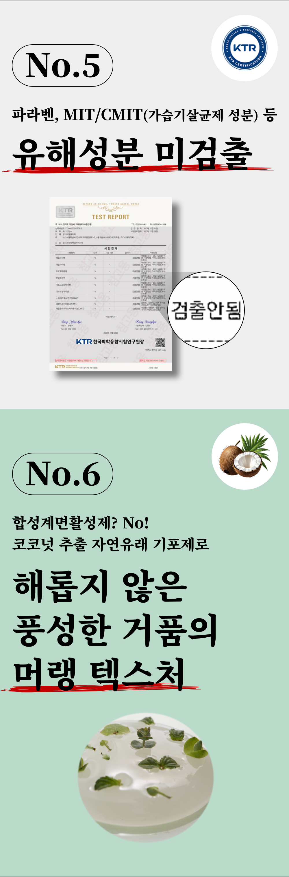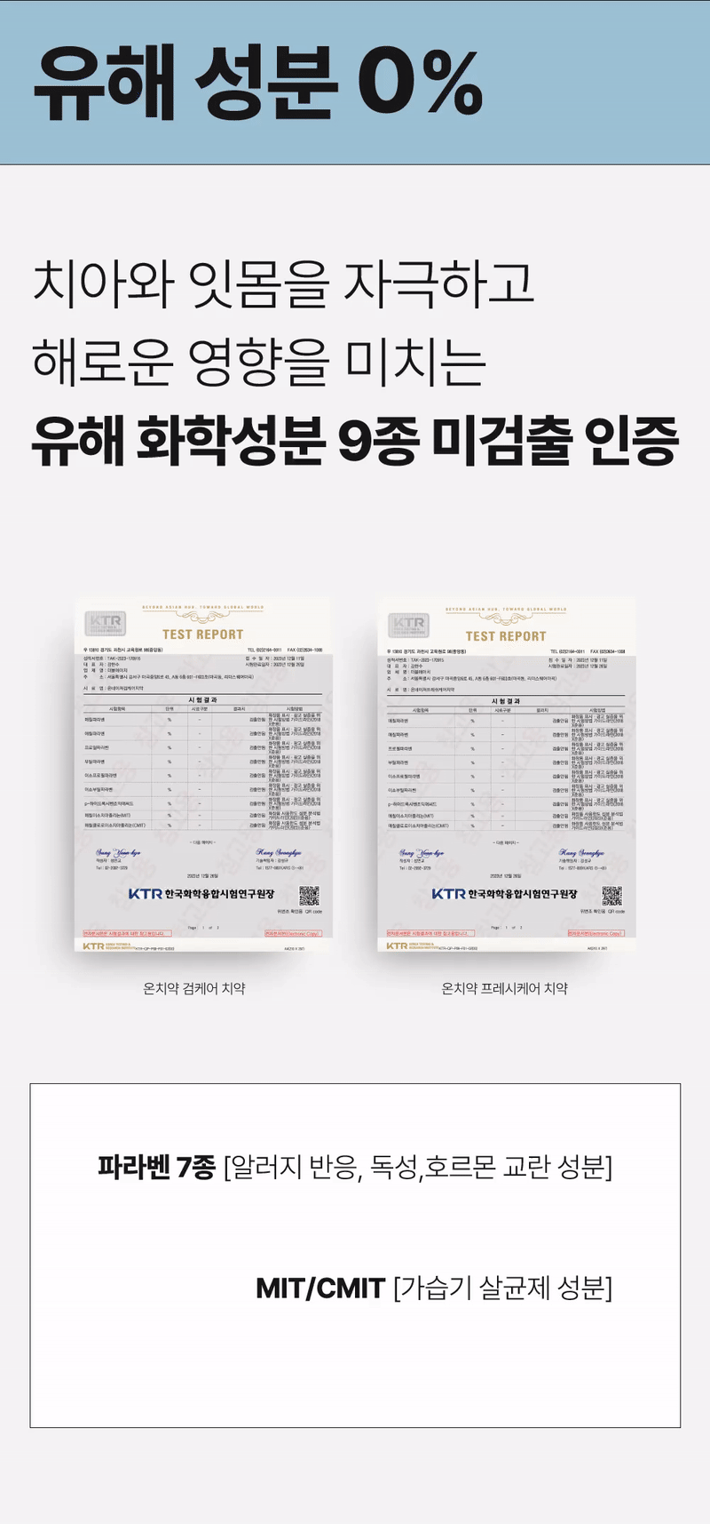 - 無 합성계면활성제, MIT/CMIT(가습기 살균제 성분), 트리클로산, 광물성오일, 색소, 파라벤 등