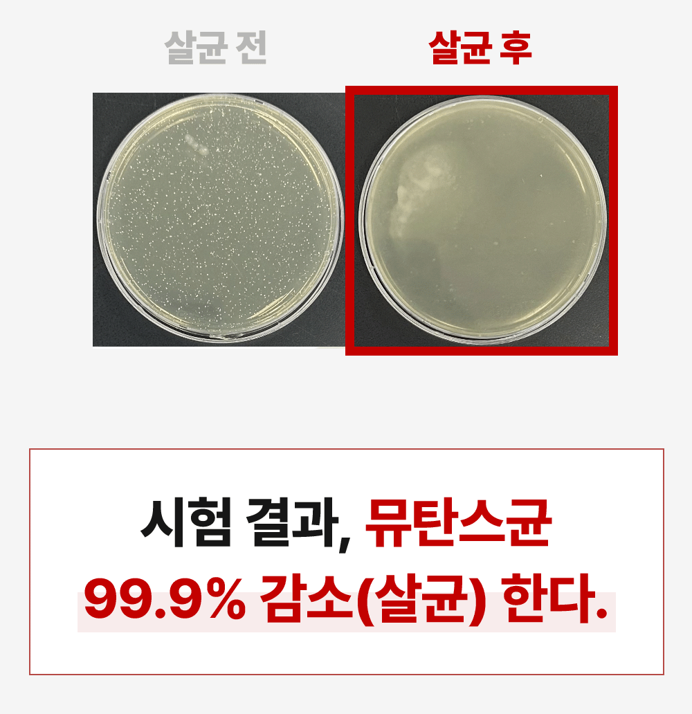 ◾충치 주원인균 뮤탄스균 99.9% 살균