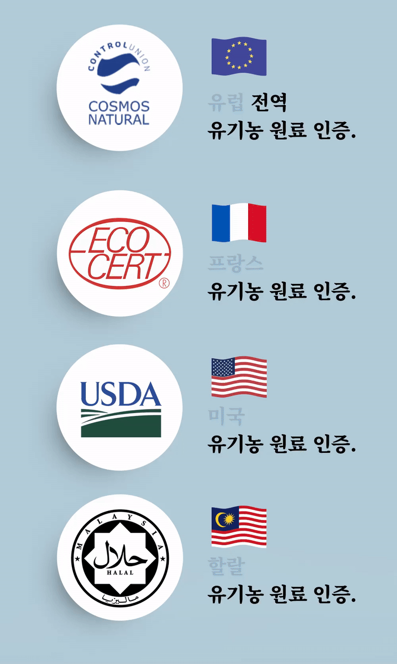 ◾세계적 인증 받은 유기농 자연성분(유럽, 프랑스, 미국, 할랄인증 등)