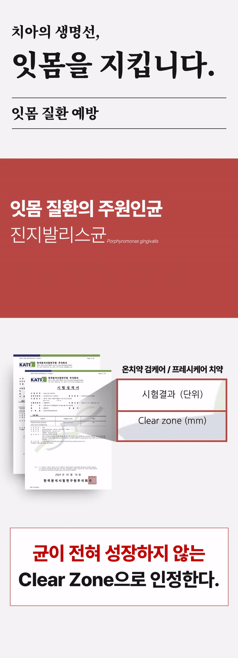 ◾잇몸질환 주원인균 진지발리스균 99.9% 살균