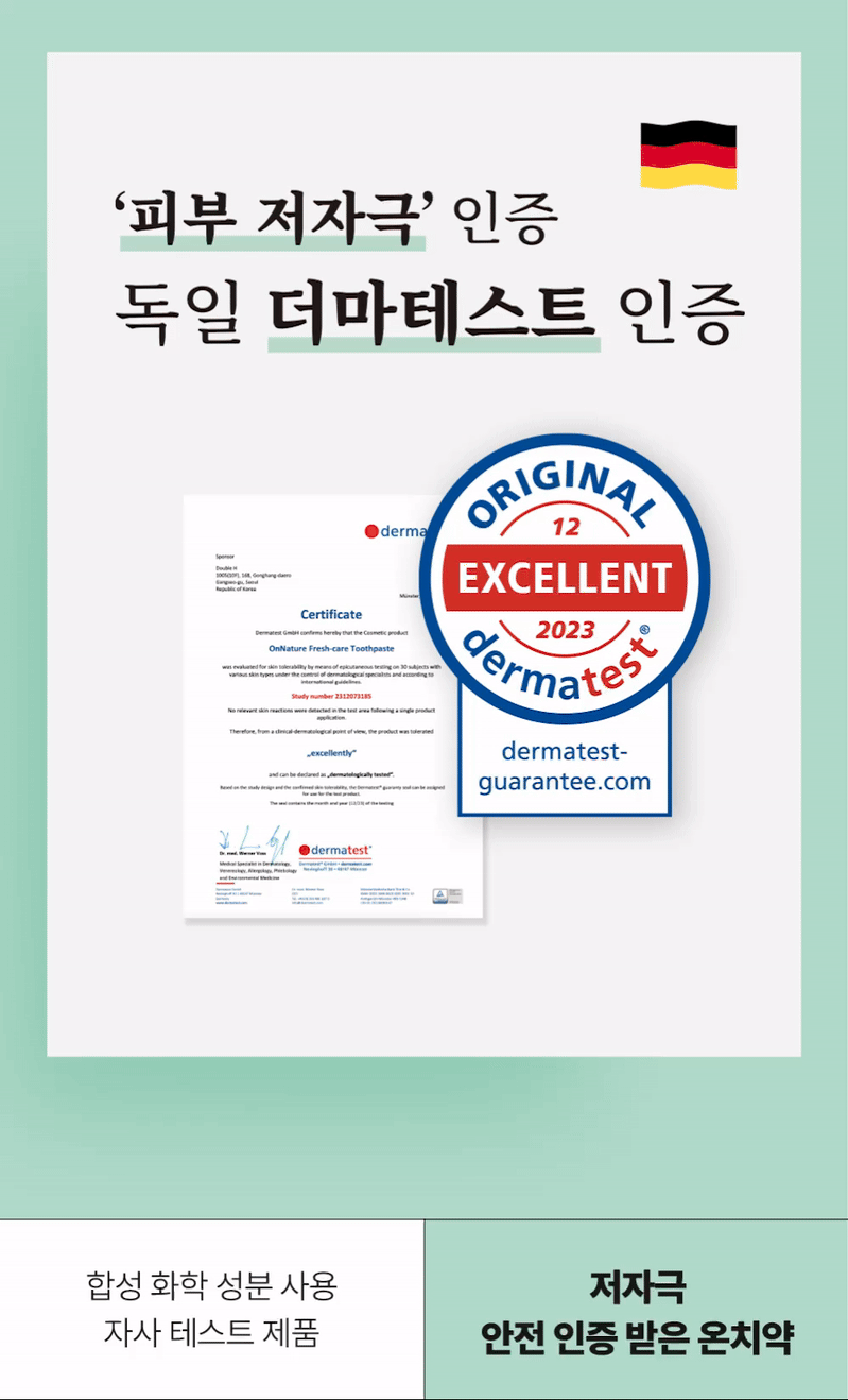 ◾독일 더마테스트 Excellent 등급 획득(피부 저자극 인증)