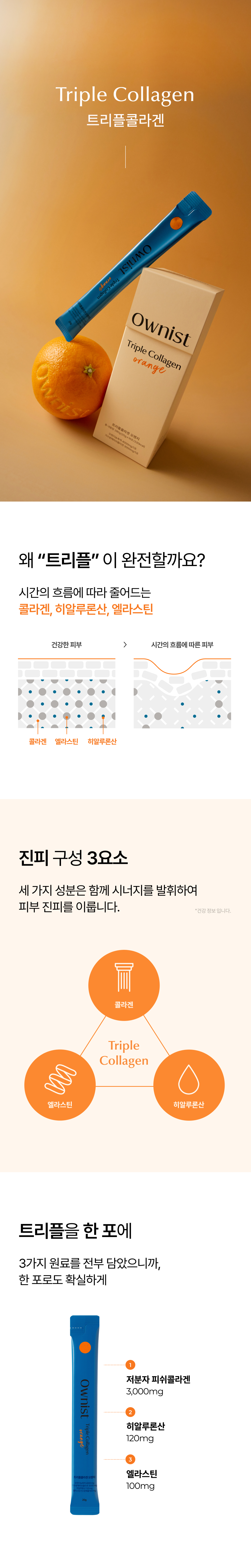 *올리브영 1위 콜라겐*피부 진피 3요소(콜라겐, 엘라스틴, 히알루론산) 모두 고함량으로 함유*캐나다 청정지역 대구 저분자 피쉬콜라겐 사용*화학부형제, 인공착향료, 감미료 무첨가