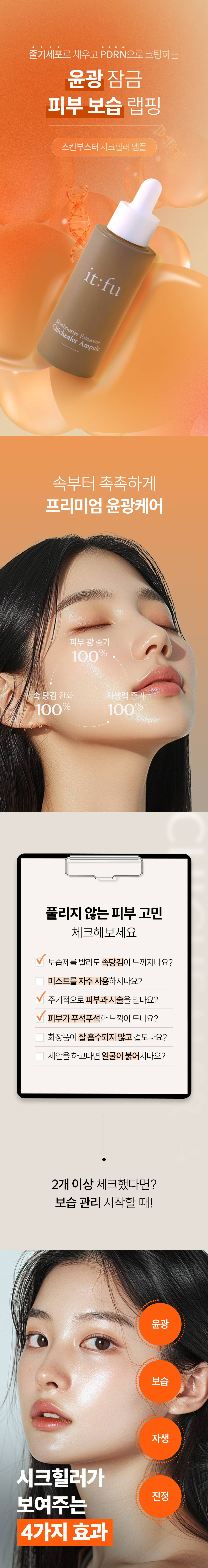- 타겟 및 효과: 빛나는 피부윤광, 속건조 보습