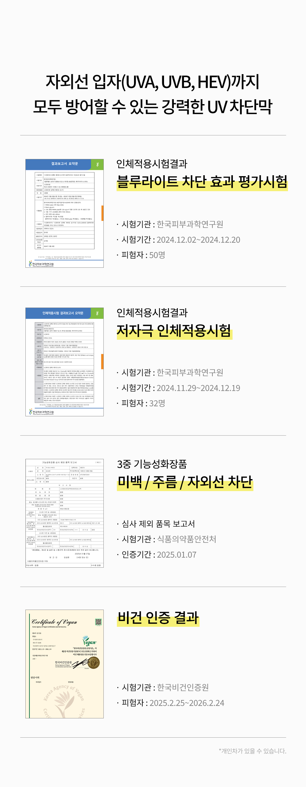 - 자외선 UV-A,UV-B 및 블루라이트까지 3중차단