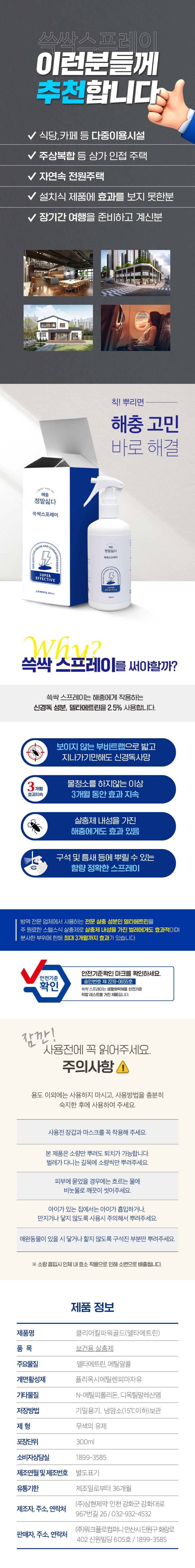 - 고함량 델타메트린(데마메트린) 2.5% 함유- 단 한 번 사용으로 3개월 이상 효과 지속- 내성을 가진 벌레에도 확실하게 효과있음- 보이지 않는 부비트랩, 지나가기만 해도 신경독 사망