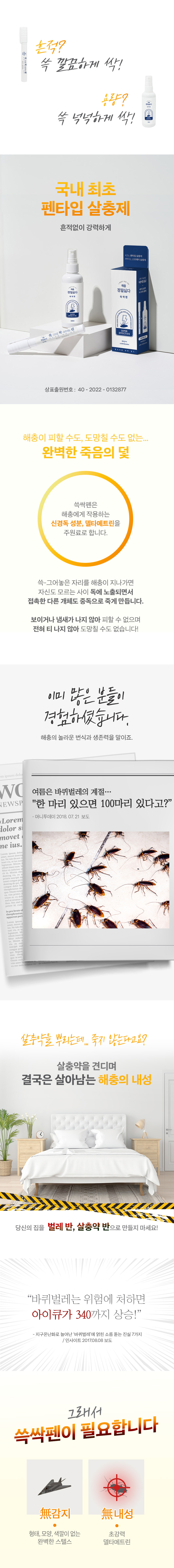 • 정말싫다 해충 바퀴벌레 살충제 쓱싹펜 set (펜슬타입 7ml + 스프레이타입 100ml)
