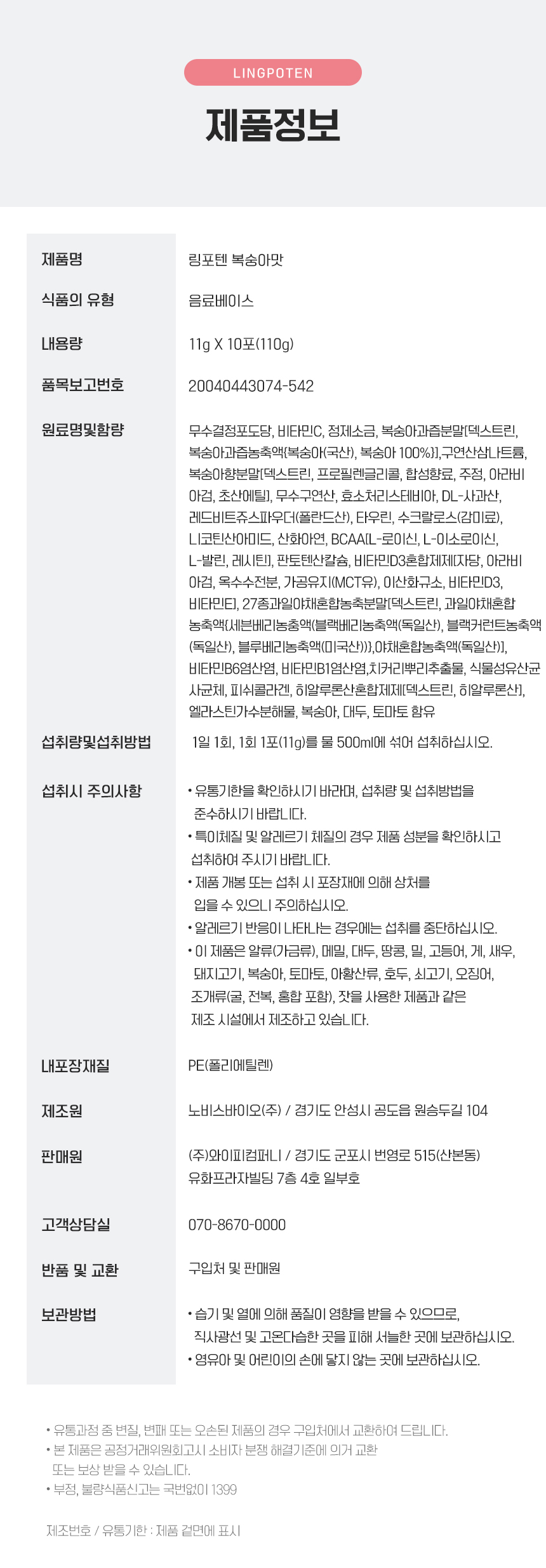 ◾아연100% / 비타민C 500% / 비타민B6 100% / 비타민B1 100% / 비타민B3 100% / 비타민B5 100% / 비타민D 100% 함유