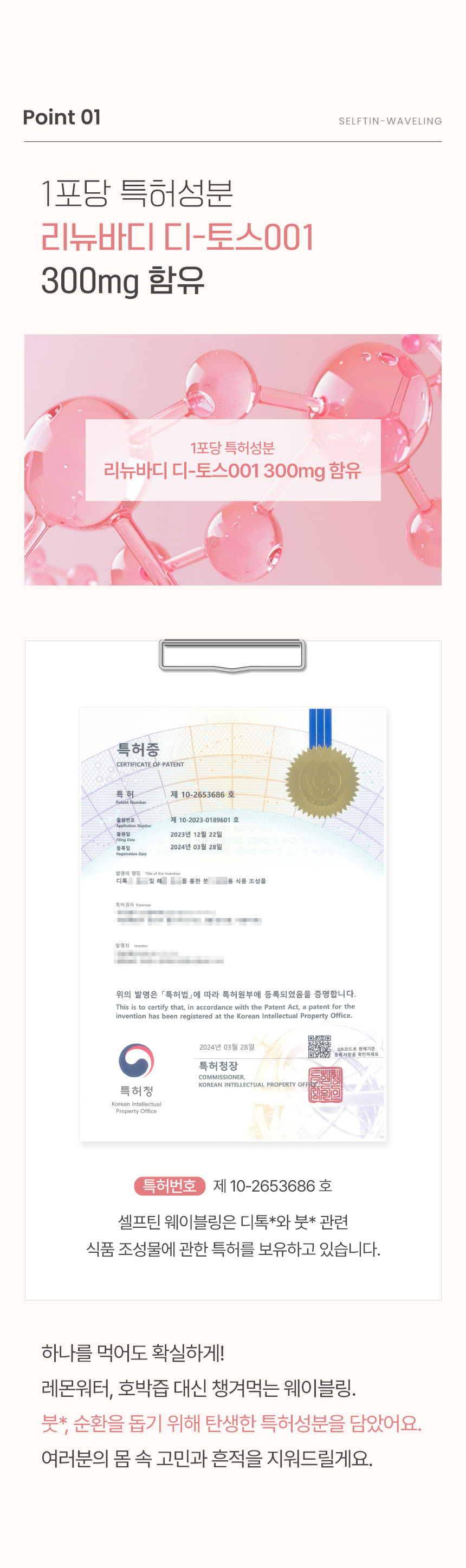 - 붓기&디톡스 특허물질인 리뉴바디 디토스001 함유