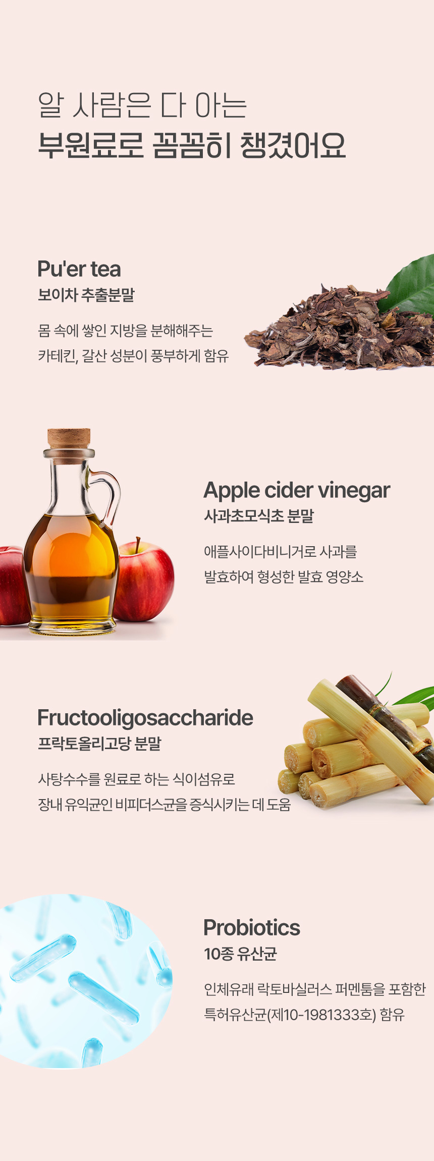 - 주원료, 부원료 붓기&디톡스에 특화 된 원료 함유