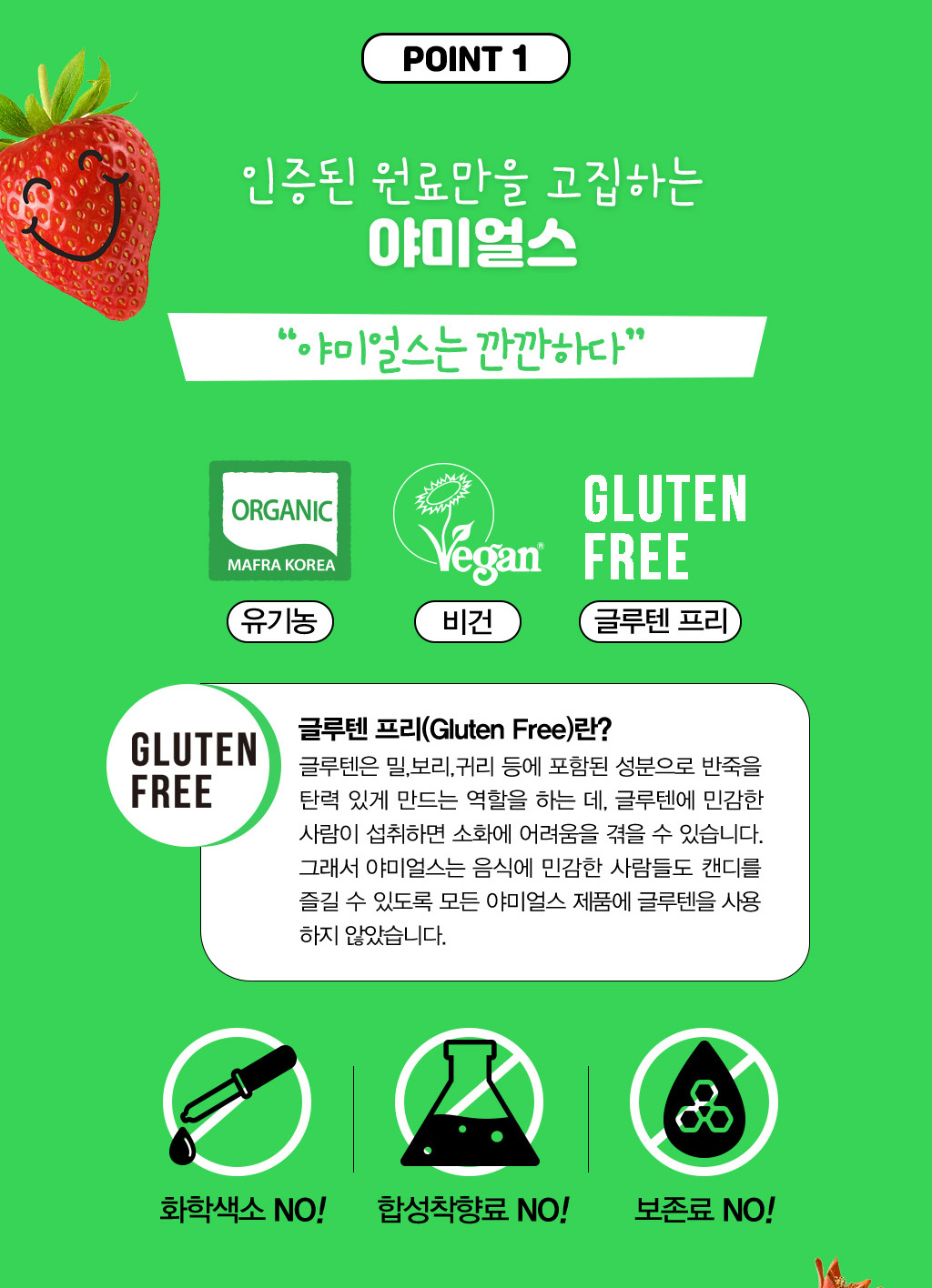 - 콜레스테롤, 트랜스지방 0%- 4가지 과일 천영향료 사용(망고,딸기,체리,복숭아)- 코셔 인증 / 비건 / 글루텐 프리 / 콩류,유제품,땅콩 제로- 화학색소 NO / 합성착향료 NO / 보존료 NO