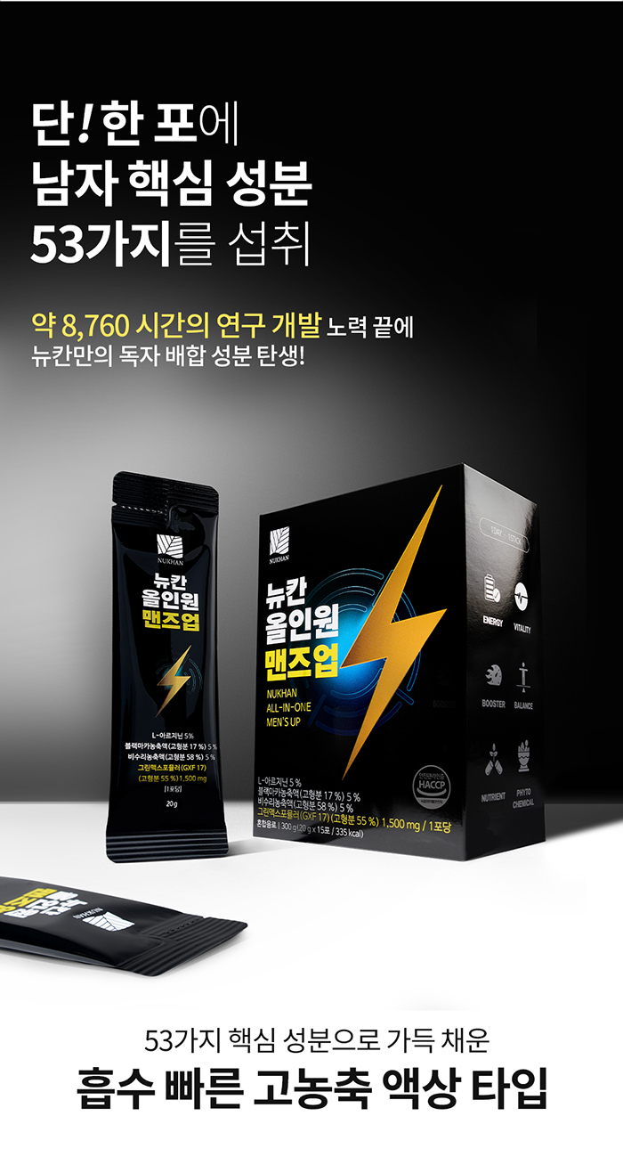 ■ 하루 1포로 남성성 완벽 충전! 53가지 남성 활력 핵심 성분 담은 엑기스