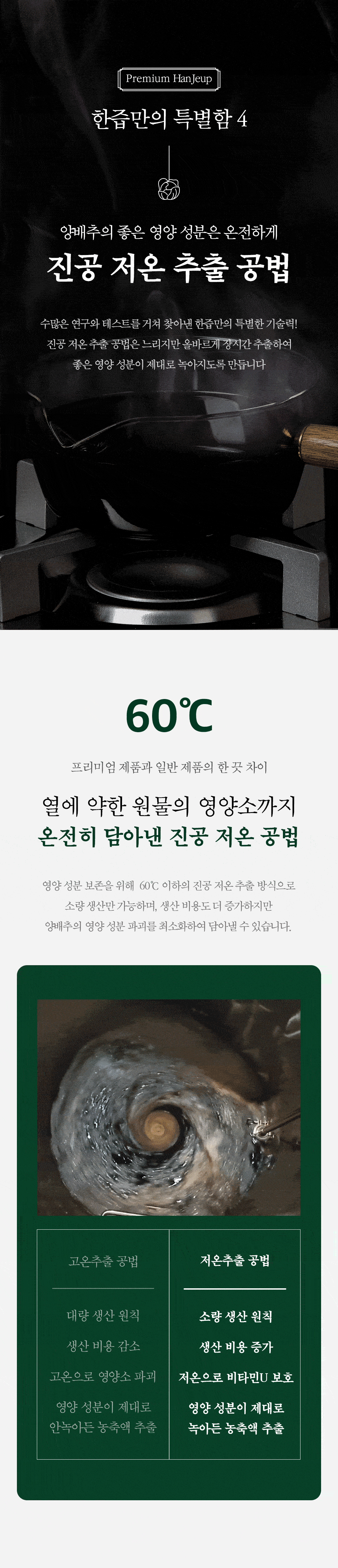 - 60도 미만 진공 저온추출 공법으로 영양소 파괴 최소화