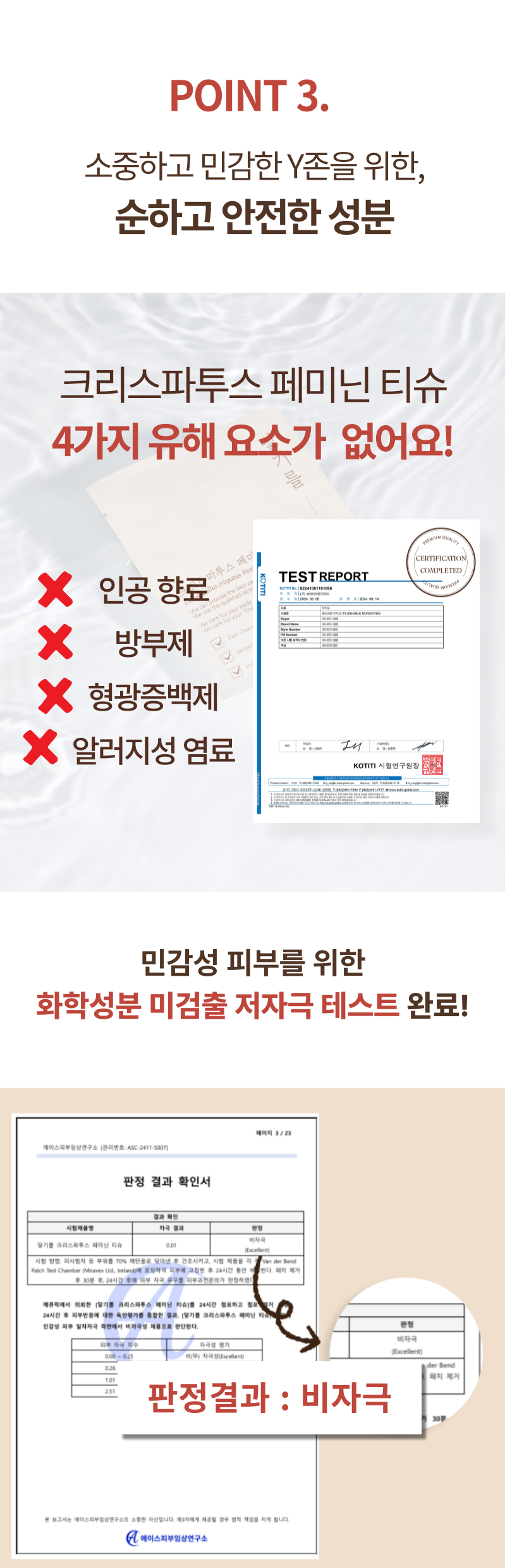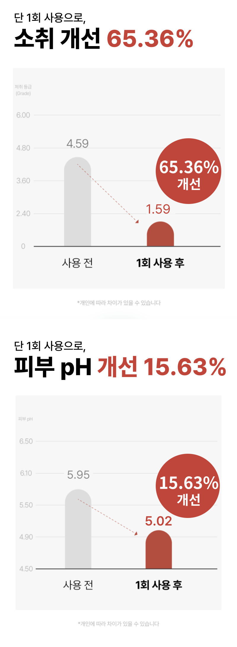 2.냄새 개선, pH 밸런스 개선, 민감성 피부 자극 테스트 완료로 안심 사용