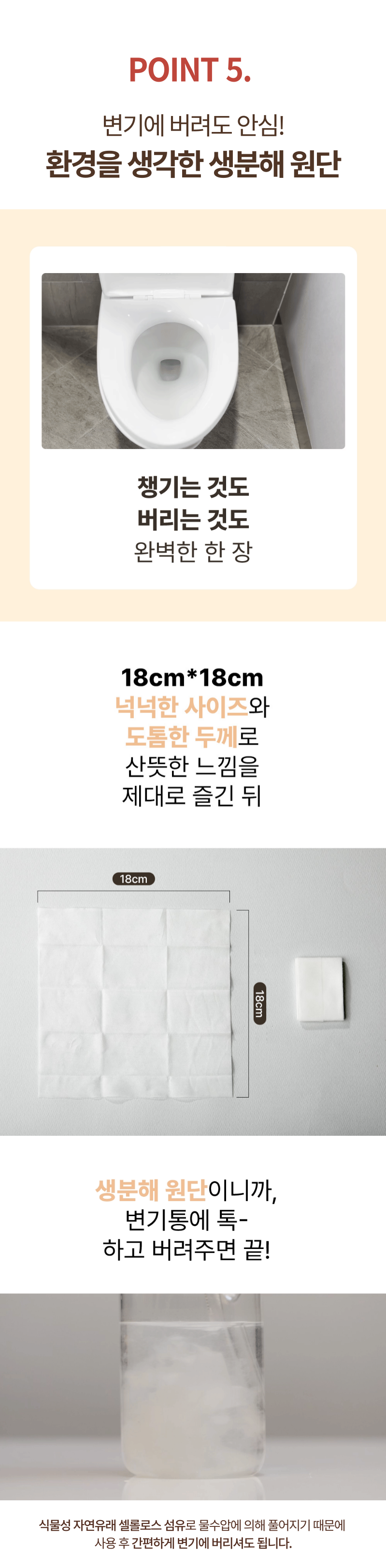 3.셀룰로스 원단 사용으로 변기에 바로 버릴 수 있어 위생적