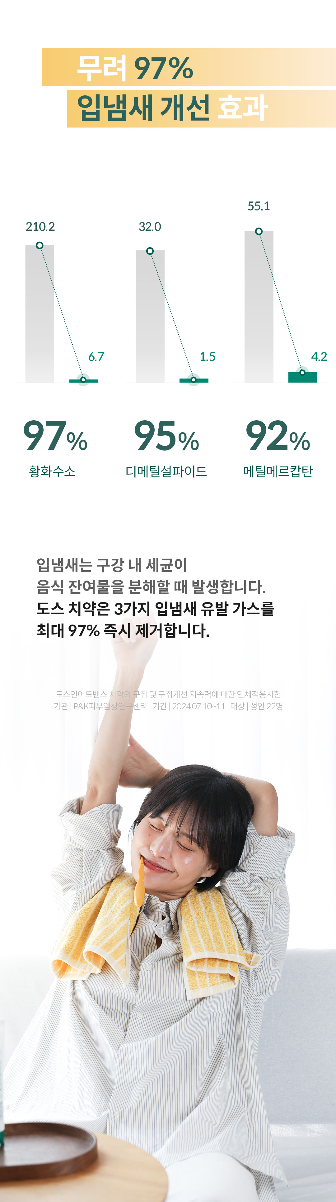 ◾임상으로 입증된 최대 97% 구취 제거, 8시간 상쾌함 유지