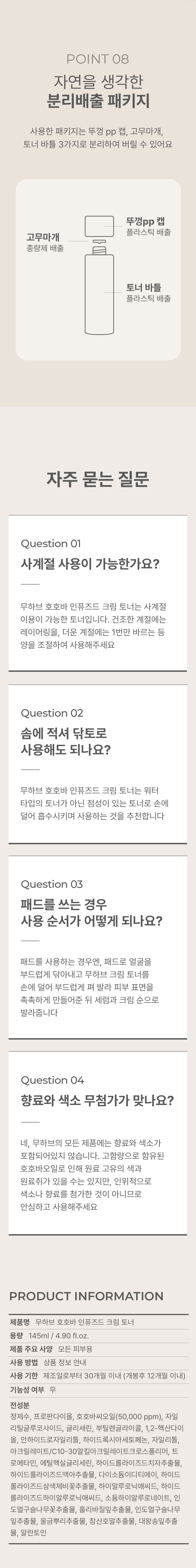 나노화 된 호호바오일이 고함량 함유되어 이층상 구분 없는 유백색의 특이 제형