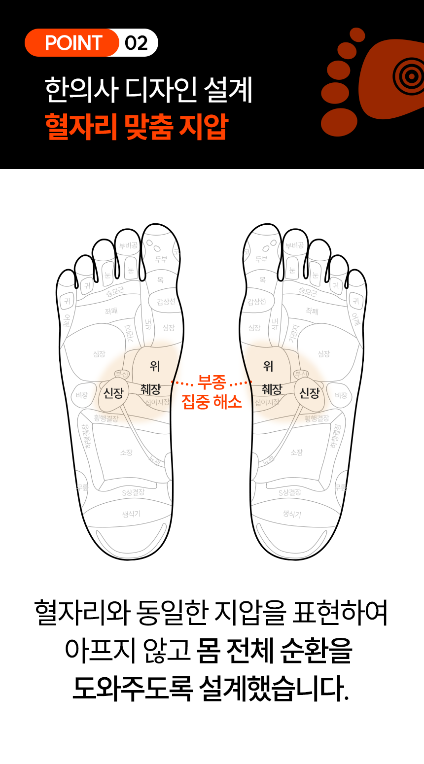 - 경력25년의 한의사가 제품개발에 참여- 용천혈자극개선 순환과 물질대사기능 촉진- 발바닥 혈자리 맞춤 지압