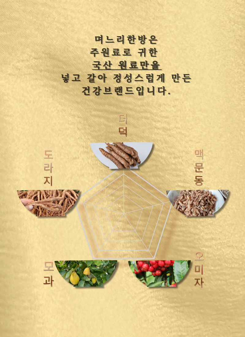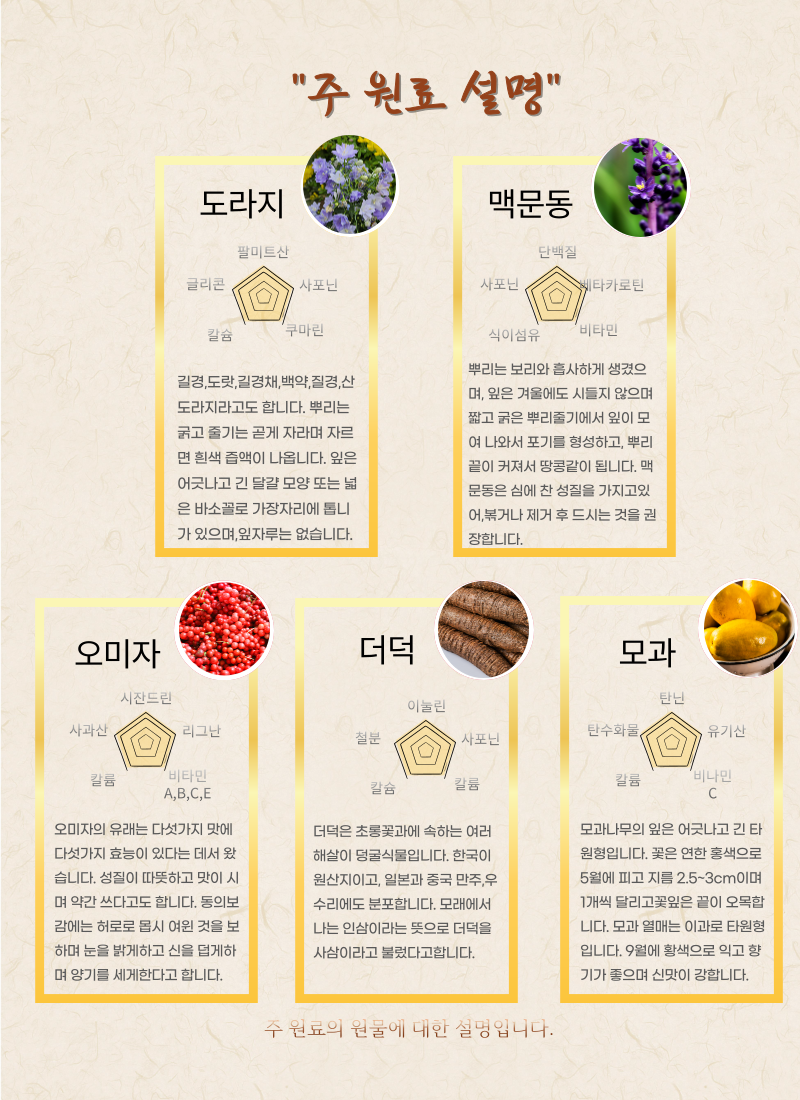 ◾국산 약재 5가지로 고함량 제조(타사 제품의 경우 수입, 대체약재 으로 제조 사례가 많음)