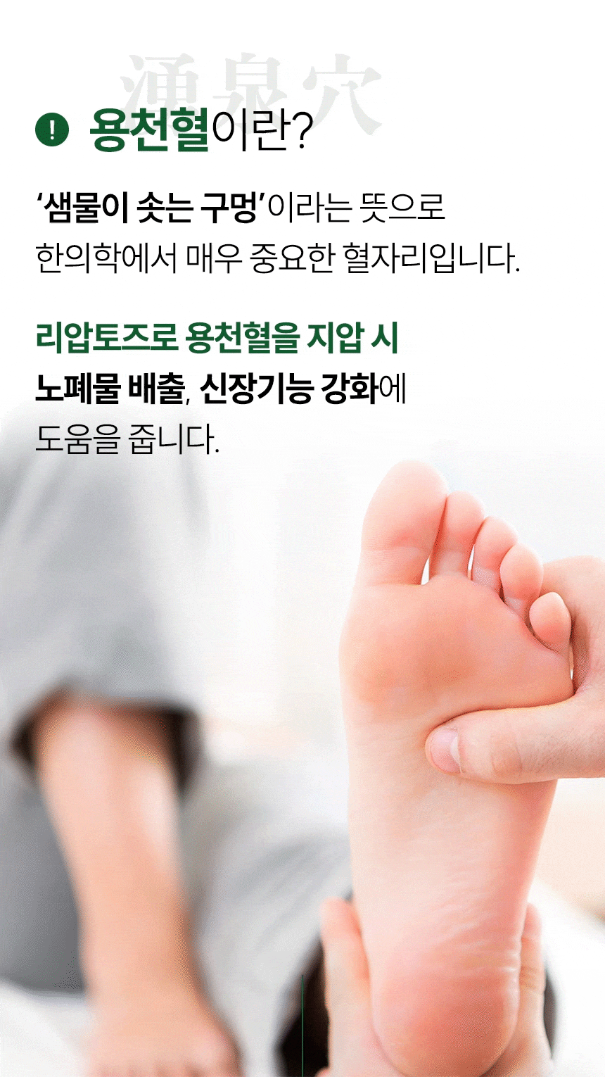 - 경력25년의 한의사가 제품개발에 참여- 용천혈자극개선 순환과 물질대사기능 촉진- 용천혈 집중 지압