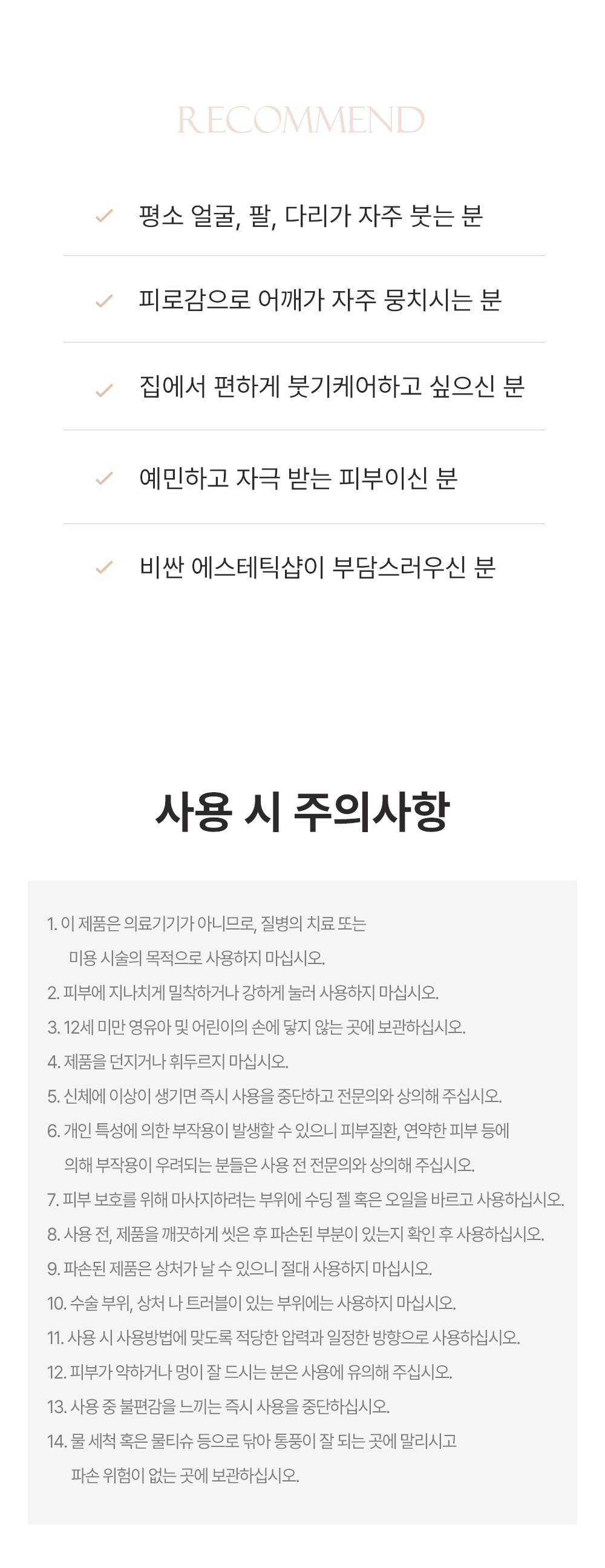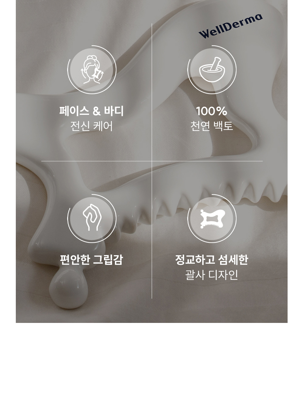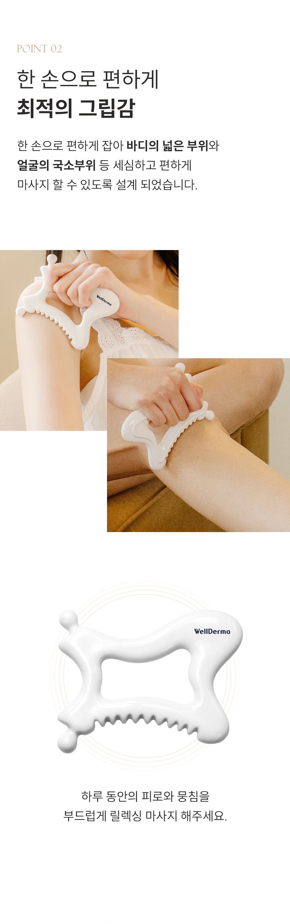 - 자연스러운 라인을 위한 밀착 전신 케어- 100% 천연백토- 편안한 그립감- 혈행개선과 혈액순환에 도움을 줌