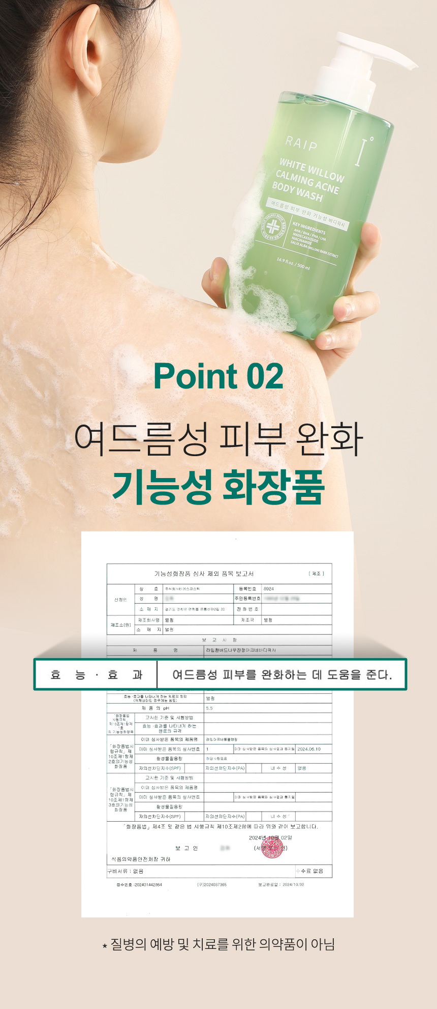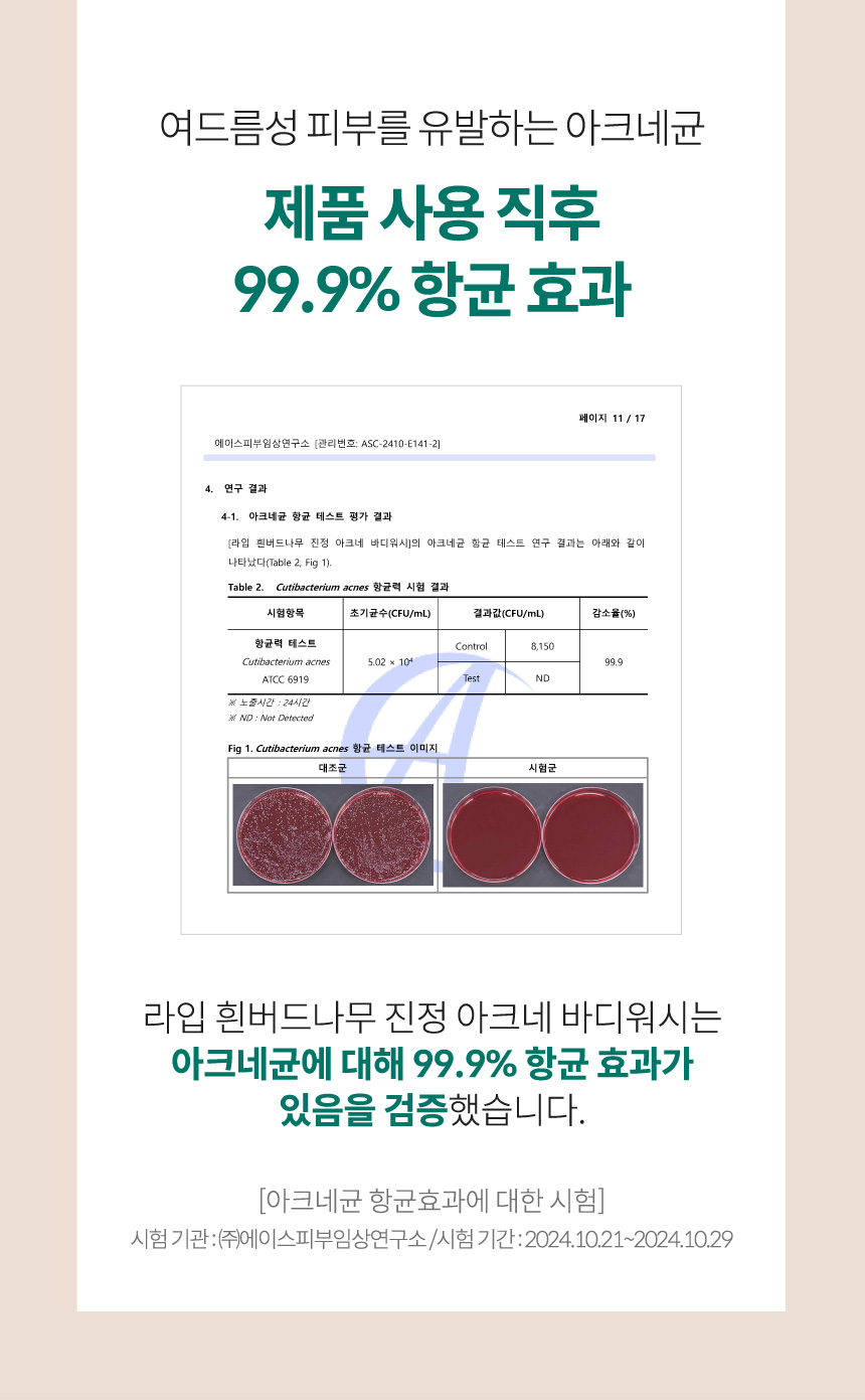 여드름성 피부 완화 기능성 화장품 / 피부과 입점 상품 / 임상 시험 완료 / 99.9% 항균효과 / 더마테스트 완료