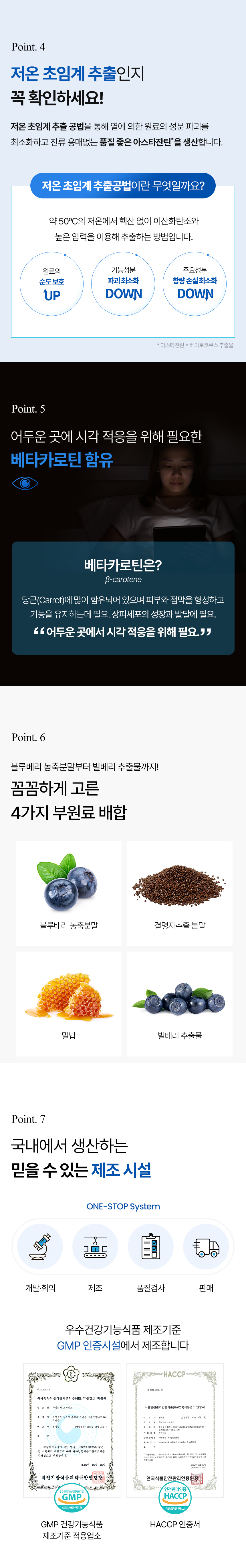- 어두운 곳에 시각적응을 위한 베타카로틴 함유