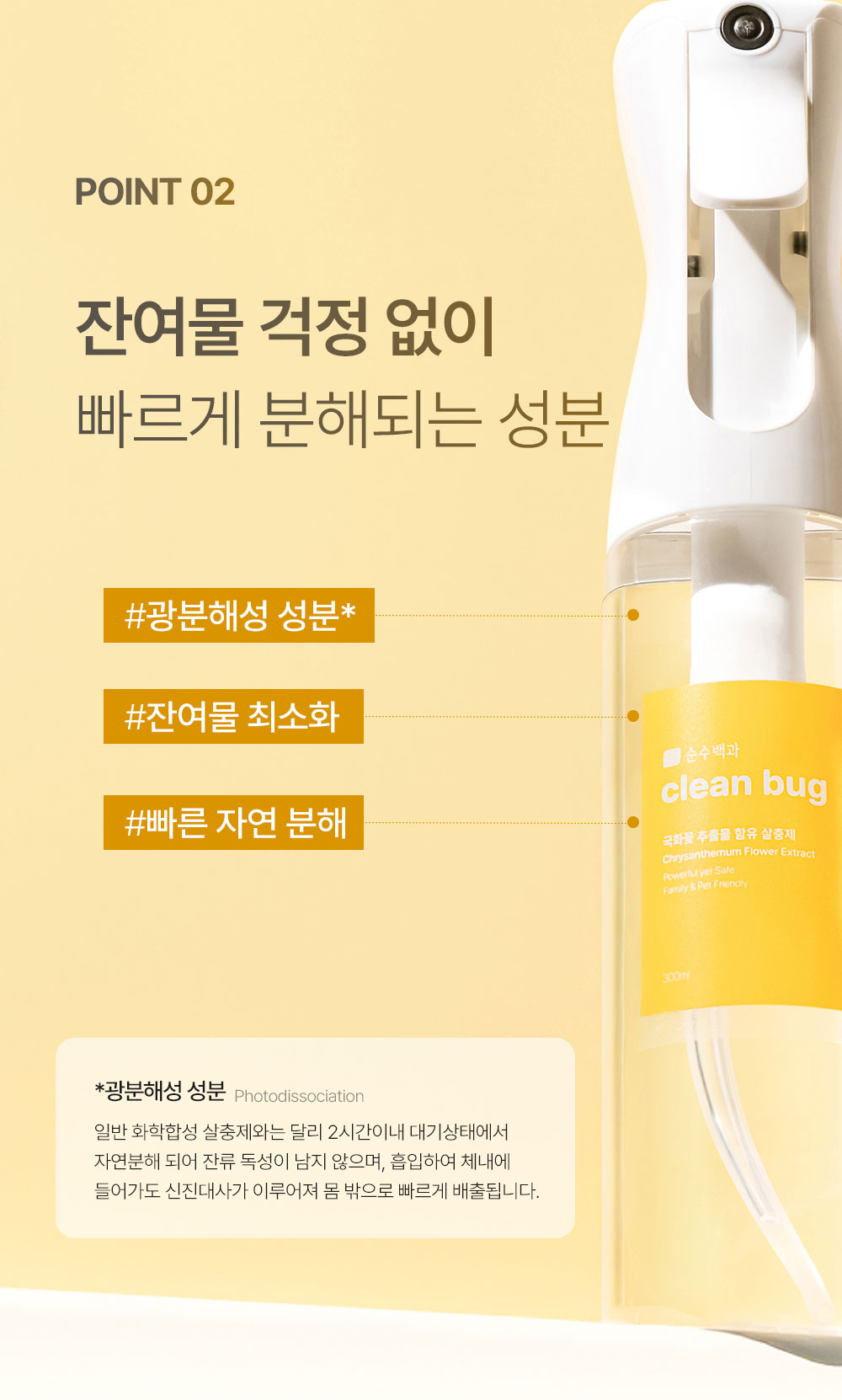 - 국화꽃 추출물로 빠른 분해와 잔류 성분 적음