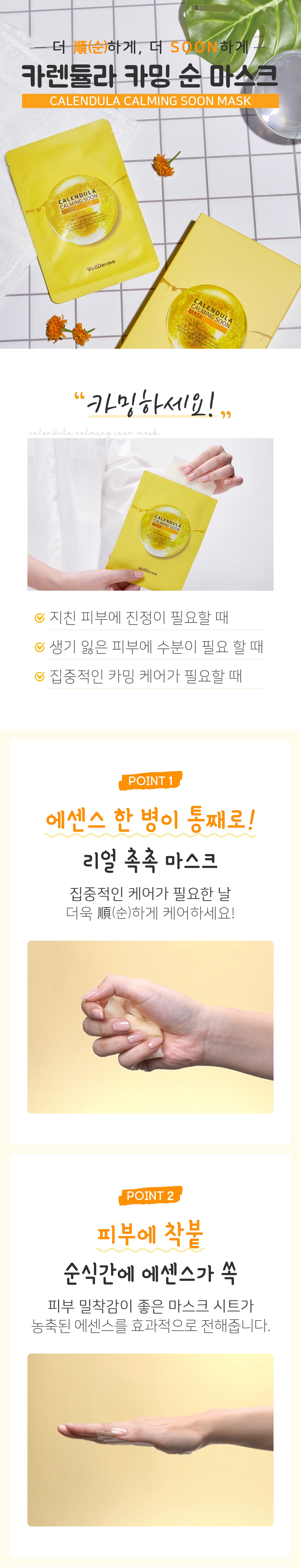 - 에센스 한 병이 통째로 들어간 리얼 촉촉 마스크- 지친 피부에 진정이 필요할 때- 생기 잃은 피부에 수분이 필요할 때- 집중적인 카밍 케어가 필요할 때