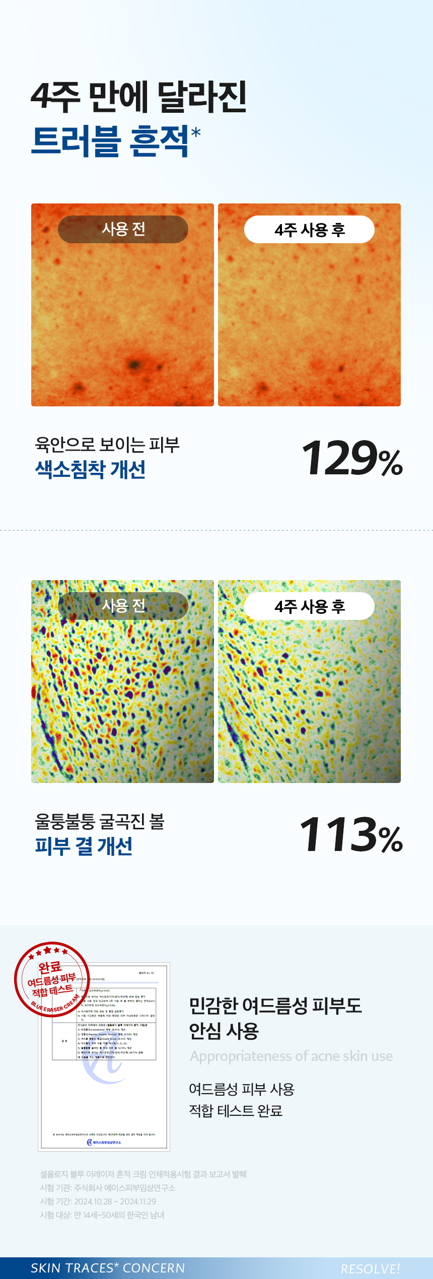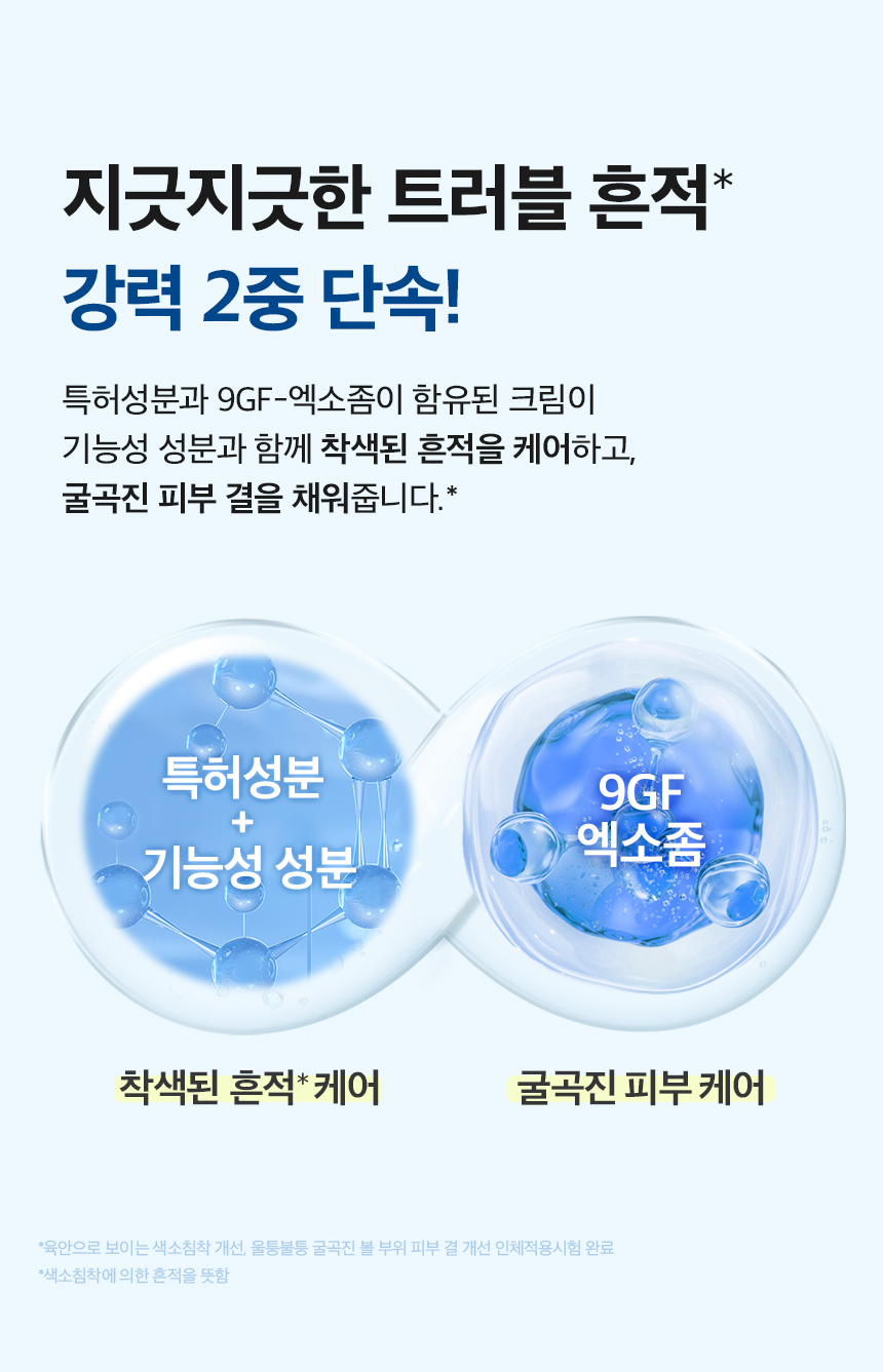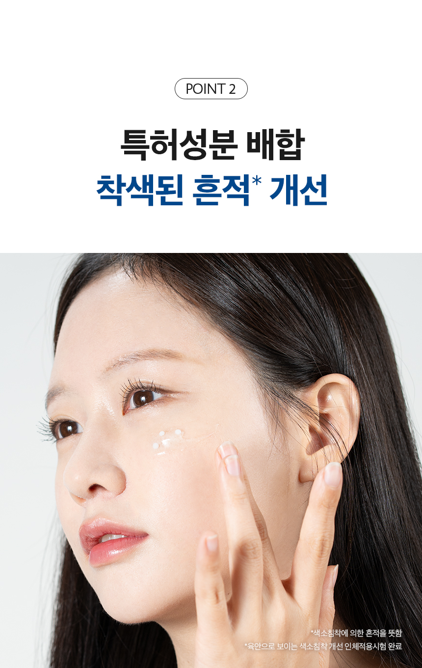 - 착색된 흔적을 맑고 깨끗하게, 핵심 성분 배합- 독자적인 이중 캡슐- 여드름성/민감성 피부 사용 적합 테스트 완료