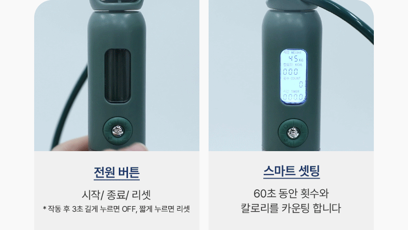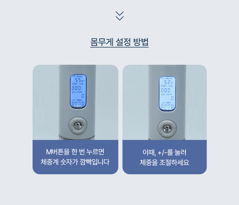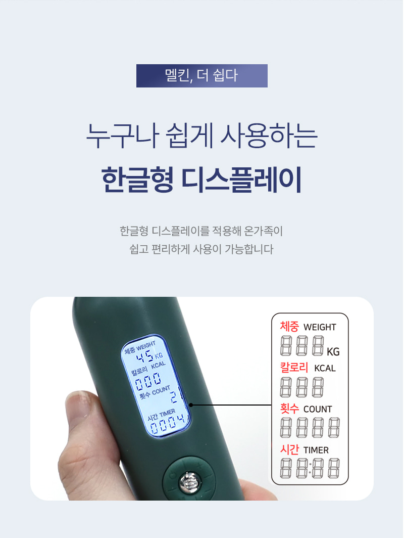 - 실내/실외 자유롭게 맞춤 운동 가능- 정확한 칼로리 측정 몸무게 설정기능- 정확한 운동량 측정 60초 스마트 셋팅- 원하는 중량으로 운동