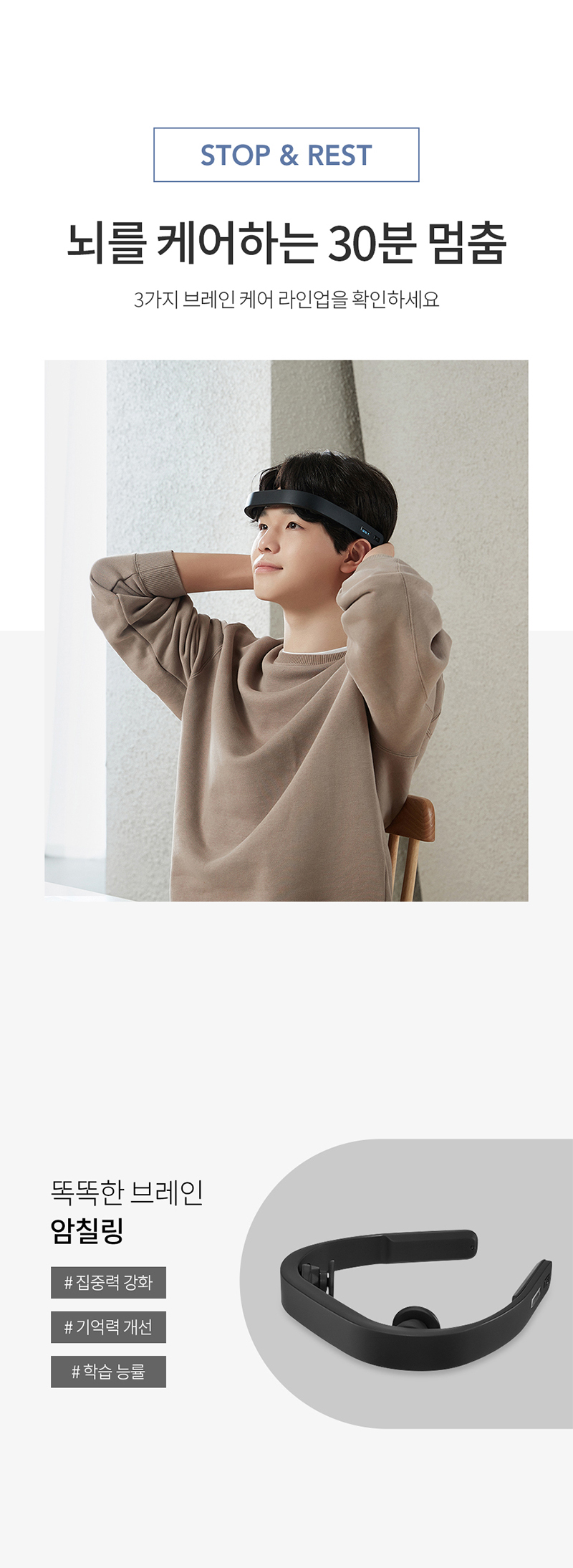 - 똑똑한 브레인 암칠링- 미세 전류를 두피에 흘려 뇌 자극- 전류가 뇌피질에 도달하여 뇌 신경에 변화- 멜라토닌, 세로토닌 촉진